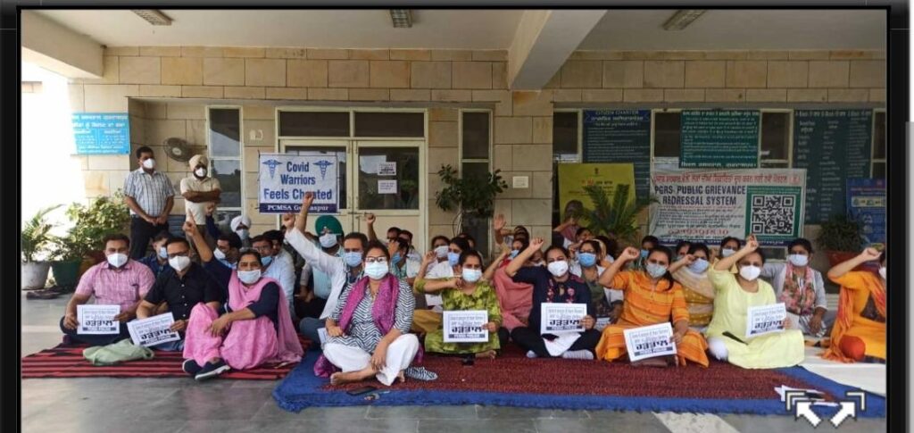 गुरदासपुर, 25 जून (मनन सैनी)। छठे वेतन कमिशन के विरोध में शुक्रवार को सिविल अस्पताल के डाक्टर्ज, नर्सिंग स्टाफ, लेबारट्री स्टाफ, कलेरिक्ल स्टाफ, पेरा मेडीकल स्टाफ व दर्जाचार कर्मचारियों ने दो घंटे धरना देकर पंजाब सरकार के खिलाफ जमकर नारेबाजी की। जिसकी अध्यक्षता पीसीएमएस के जिला प्रधान डा. लव हंस व एसएमओ डा. चेतना ने की।