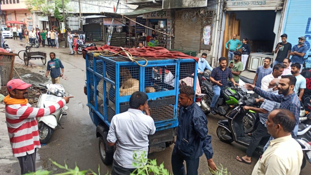 गीता भवन रोड पर स्थित पेट्रोल पंप की तरफ से व्यक्ति मंदिर की तरफ जा रहा था जैसे ही वह बीच रास्ते पहुंचा तो दोनों तरफ से आवारा कुत्तों ने व्यक्ति को घेर लिया और नोचना शुरु कर दिया हालांकि व्यक्ति के कपड़े तक फाड़ दिए गए सुबह जब पुलिस कर्मचारी मौके पर पहुंचे तो व्यक्ति के शरीर पर कोई कपड़ा नहीं था।