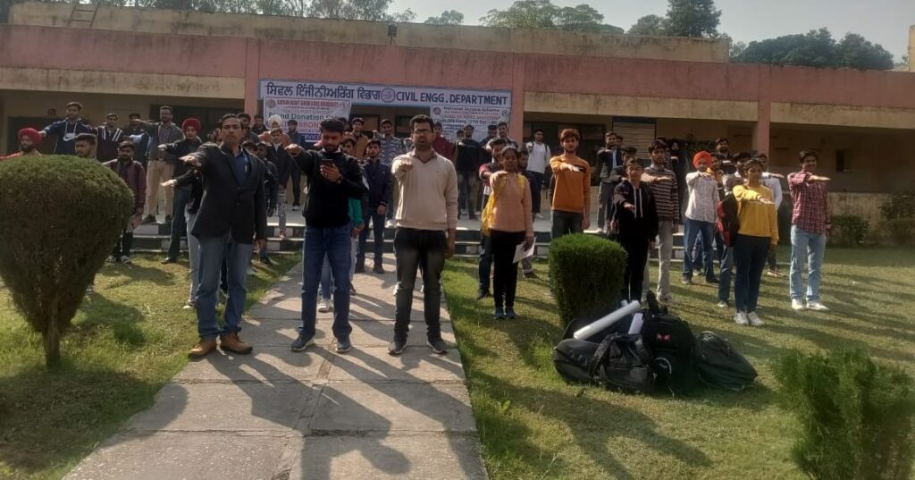 ਗੁਰਦਾਸਪੁਰ, 26 ਨਵੰਬਰ (ਮੰਨਣ ਸੈਣੀ)। ਸਰਦਾਰ ਬੇਅੰਤ ਸਿੰਘ ਸਟੇਟ ਯੂਨੀਵਰਸਿਟੀ ਦੇ ਵਾਈਸ-ਚਾਂਸਲਰ ਡਾ: ਸੁਸ਼ੀਲ ਮਿੱਤਲ ਅਤੇ ਰਜਿਸਟਰਾਰ ਡਾ ਰਾਜੀਵ ਬੇਦੀ ਦੀ ਪ੍ਰਧਾਨਗੀ ਤਲੇ ਯੂਨੀਵਰਸਿਟੀ ਦੇ ਐਨ.ਐਸ.ਐਸ ਅਤੇ ਰੈੱਡ ਰਿਬਨ ਕਲੱਬ ਵੱਲੋਂ ਯੂਨੀਵਰਸਿਟੀ ਵਿਚ ਸੰਵਿਧਾਨ ਦਿਵਸ ‘ਤੇ ਇਕ ਪ੍ਰੋਗਰਾਮ ਕਰਵਾਇਆ ਗਿਆ। ਐਨ.ਐਸ.ਐਸ ਮੁਖੀ ਤਰੁਣ ਮਹਾਜਨ ਨੇ ਦੱਸਿਆ ਕਿ ਐਨ.ਐਨ.ਐਸ ਵਲੋਂ ਯੂਨੀਵਰਸਿਟੀ ਵਿੱਚ ਸੰਵਿਧਾਨ ਦਿਵਸ ਮੌਕੇ ਤੇ ਵਿਦਿਆਰਥੀਆਂ ਨੂੰ ਸਹੁੰ ਚੁਕਾਈ ਕਿ ਉਹ ਬਿਨਾਂ ਕਿਸੇ ਭੇਦਭਾਵ ਦੇ ਇੱਕ ਚੰਗੇ ਐਨਐਸਐਸ ਵਲੰਟੀਅਰ ਬਣ ਕੇ ਸਮਾਜ ਅਤੇ ਦੇਸ਼ ਲਈ ਕੰਮ ਕਰਨਗੇ। ਇਸ ਮੌਕੇ ਚੇਤਨ ਸੈਣੀ, ਵਰੁਣ ਮਹਾਜਨ, ਤਰੁਣ ਮਹਾਜਨ ਅਤੇ ਰਾਜਨ ਵੀ ਹਾਜ਼ਰ ਸਨ।