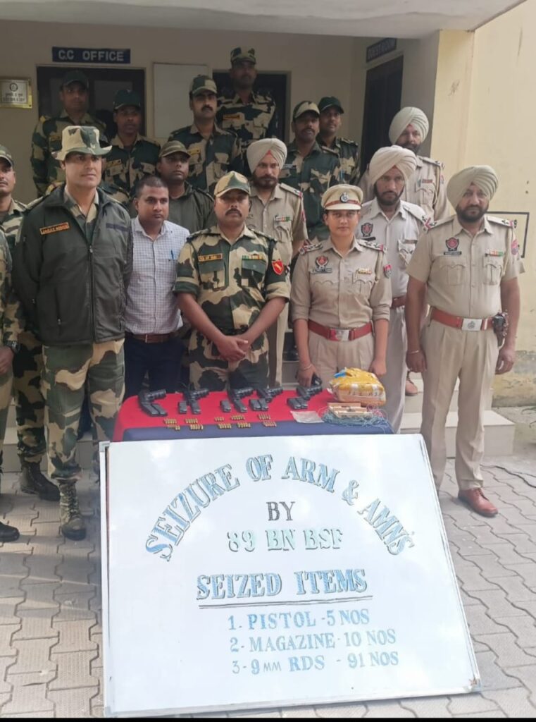 ਇਸ ਤੋਂ ਬਾਅਦ ਮੌਕੇ ‘ਤੇ ਤਲਾਸ਼ੀ ਮੁਹਿੰਮ ਚਲਾਈ ਗਈ। ਇਸ ਦੌਰਾਨ ਬੀਐਸਐਫ ਜਵਾਨਾਂ ਨੇ ਇੱਕ ਪੈਕੇਟ ਦੀ ਖੇਪ ਬਰਾਮਦ ਕੀਤੀ, ਜਿਸ ਨੂੰ ਡਰੋਨ ਤੋਂ ਸੁੱਟਿਆ ਗਿਆ ਸੀ। ਇਸ ਵਿੱਚ 5 ਪਿਸਤੌਲ, 10 ਪਿਸਤੌਲ ਮੈਗਜ਼ੀਨ, 9 ਐਮਐਮ ਦੇ 71 ਰੌਂਦ ਅਤੇ .311 ਦੇ 20 ਰੌਂਦ ਸਨ।