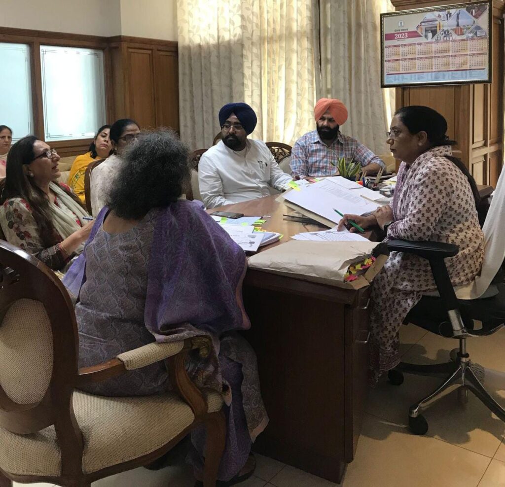 ਚੰਡੀਗੜ੍ਹ, 6 ਜੁਲਾਈ 2023 (ਦੀ ਪੰਜਾਬ ਵਾਇਰ)। ਸਮਾਜਿਕ ਸੁਰੱਖਿਆ, ਮਹਿਲਾ ਤੇ ਬਾਲ ਵਿਕਾਸ ਮੰਤਰੀ ਡਾ. ਬਲਜੀਤ ਕੌਰ ਦੀ ਪ੍ਰਧਾਨਗੀ ਹੇਠ ਸੂਬੇ ਵਿੱਚ ਅਰਲੀ ਚਾਈਲਡਹੁੱਡ ਕੇਅਰ ਐਂਡ ਐਜੂਕੇਸ਼ਨ (ਈ.ਸੀ.ਸੀ.ਈ.) ਨੀਤੀ ਨੂੰ ਪ੍ਰਭਾਵਸ਼ਾਲੀ ਢੰਗ ਨਾਲ ਲਾਗੂ ਕਰਨ ਲਈ ਸਿੱਖਿਆ ਵਿਭਾਗ ਨਾਲ ਅੱਜ ਆਪਣੇ ਦਫ਼ਤਰ ਪੰਜਾਬ ਸਿਵਲ ਸਕੱਤਰੇਤ, ਚੰਡੀਗੜ੍ਹ ਵਿਖੇ ਅਹਿਮ ਮੀਟਿੰਗ ਕੀਤੀ ਗਈ।