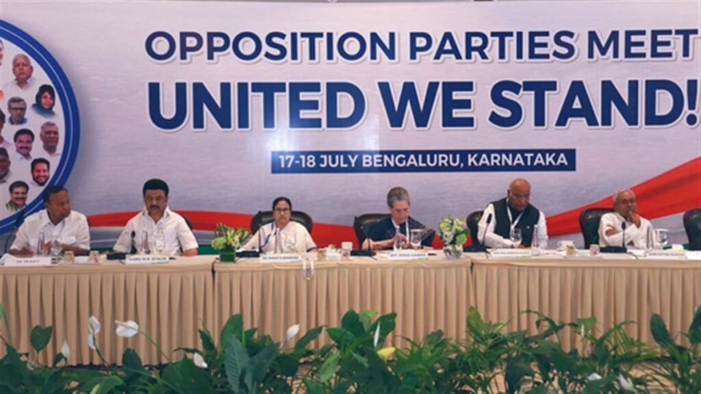 ਬੈਂਗਲੋਰ, 18 ਜੁਲਾਈ 2023 (ਦੀ ਪੰਜਾਬ ਵਾਇਰ)। ਕਰਨਾਟਕ ਦੀ ਰਾਜਧਾਨੀ ਬੈਂਗਲੁਰੂ ਵਿਚ ਸੰਯੁਕਤ ਵਿਰੋਧੀ ਦਲਾਂ ਦੀ ਮੀਟਿੰਗ ਦੂਜੇ ਦਿਨ ਖਤਮ ਹੋਈ ਹੈ। ਇਸ ਮੀਟਿੰਗ ਵਿਚ ਕਾਂਗਰਸ ਸਣੇ ਕੁੱਲ 26 ਦਲਾਂ ਦੇ ਨੇਤਾ ਸ਼ਾਮਲ ਹਨ। ਮੀਟਿੰਗ ਵਿਚ ਯੂਨਾਈਟਿਡ ਪ੍ਰੋਗ੍ਰੈਸਿਵ ਅਲਾਈਂਸ ਯਾਨੀ ਯੂਪੀਏ ਦਾ ਨਾਂ ਬਦਲ ਦਿੱਤਾ ਗਿਆ ਹੈ। ਹੁਣ ਇਸ ਦਾ ਨਾਂ INDIA ‘ਇੰਡੀਆ’ (ਇੰਡੀਅਨ ਨੈਸ਼ਨਲ ਡੈਮੋਕ੍ਰੇਟਿਕ ਅਲਾਈਂਸ) ਕਰ ਦਿੱਤਾ ਗਿਆ ਹੈ। ਆਮ ਆਦਮੀ ਪਾਰਟੀ ਦੇ ਸਾਂਸਦ ਰਾਘਵ ਚੱਡਾ ਨੇ ਯੂਪੀਏ ਦਾ ਨਾਂ ਬਦਲਣ ਦੀ ਜਾਣਕਾਰੀ ਦਿੱਤੀ। ਉਸ ਨੇ ਟਵੀਟ ਕਰ ਕੇ ਕਿਹਾ ਕਿ ਅਸੀ INDIA ਹਾਂ। ਉਧਰ ਜੇਡੀਯੂ ਨੇ ਅੱਗੇ ਕਿਹਾ, ਦਿਲ ਮਿਲੇ ਦਲ ਮਿਲੇ ਹੋਇਆ ਮਹਾਜੁਟਾਨ। ਇਸ ਵਿਚਾਲੇ ਮਾਕਪਾ ਨੇਤਾ ਡੇਰੇਕ ਓ ਬ੍ਰਾਇਨ ਨੇ ਵੀ ਯੂਪੀਏ ਦਾ ਨਾਂ ਬਦਲਣ ਬਾਰੇ ਜਾਣਕਾਰੀ ਦਿੰਦੇ ਹੋਏ ਕਿਹਾ, ਚੱਕ ਦੇ ਇੰਡੀਆ।