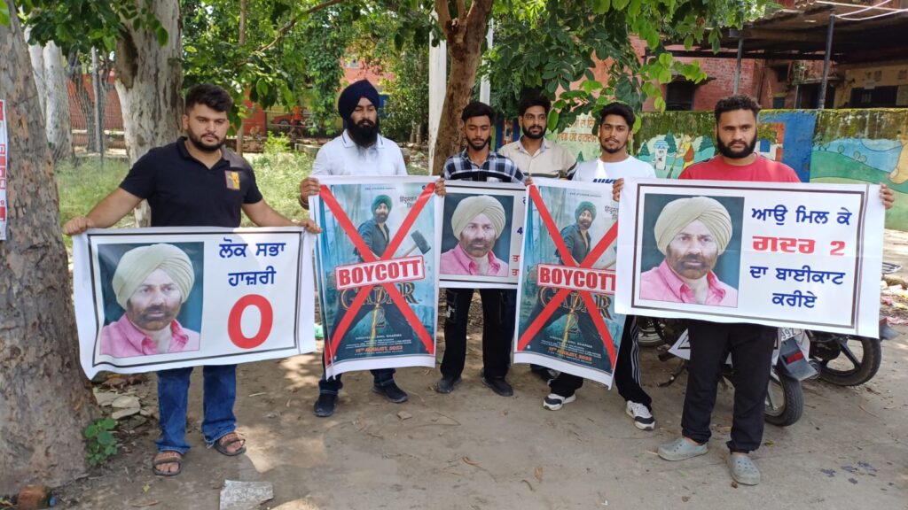 ਗੁਰਦਾਸਪੁਰ, 08 ਅਗਸਤ 2023 (ਦੀ ਪੰਜਾਬ ਵਾਇਰ)। ਬਾਲੀਵੁੱਡ ਅਭਿਨੇਤਾ ਸੰਨੀ ਦਿਓਲ ਦੀ ਮੋਸਟ ਵੇਟਿਡ ਫਿਲਮ ਗਦਰ-2 ਅੱਜ ਤੋਂ ਤਿੰਨ ਦਿਨ ਬਾਅਦ 11ਅਗਸਤ ਨੂੰ ਰਿਲੀਜ਼ ਹੋਣ ਜਾ ਰਹੀ ਹੈ। ਰਿਲੀਜ਼ ਤੋਂ ਪਹਿਲਾਂ ਇਹ ਫਿਲਮ ਕਈ ਗੱਲਾਂ ਨੂੰ ਲੈ ਕੇ ਸੁਰਖੀਆਂ ‘ਚ ਰਹੀ। ਇਸ ਦੌਰਾਨ ਫਿਲਮ ਦਾ ਵਿਰੋਧ ਵੀ ਸ਼ੁਰੂ ਹੋ ਗਿਆ ਹੈ। ਗਦਰ-2 ਦਾ ਗੁਰਦਾਸਪੁਰ ‘ਚ ਨੌਜਵਾਨਾਂ ਵਲੋਂ ਜ਼ੋਰਦਾਰ ਵਿਰੋਧ ਕੀਤਾ ਜਾ ਰਿਹਾ ਹੈ। ਨੌਜਵਾਨਾਂ ਨੇ ਫਿਲਮ ਦਾ ਬਾਈਕਾਟ ਕਰਨ ਲਈ ਪੂਰੇ ਸ਼ਹਿਰ ਵਿੱਚ ਪੋਸਟਰ ਵੀ ਲਗਾ ਦਿੱਤੇ ਹਨ।