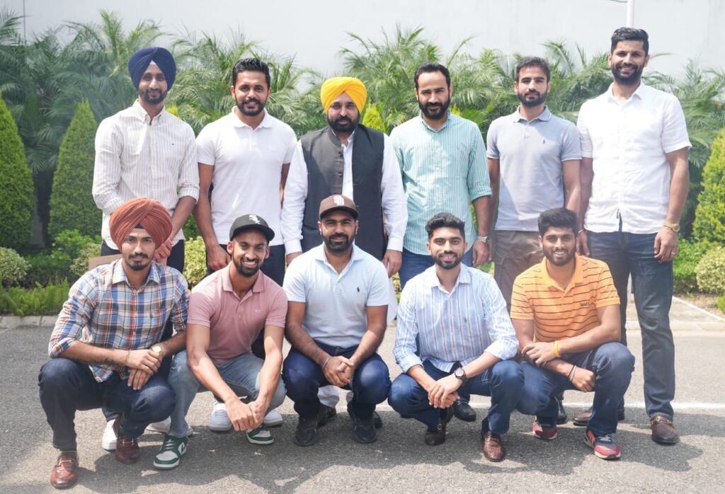 ਹਾਕੀ ਖਿਡਾਰੀਆਂ ਨੇ ਮੁੱਖ ਮੰਤਰੀ ਦੀ ਸਰਕਾਰੀ ਰਿਹਾਇਸ਼ ਉਤੇ ਮੁੱਖ ਮੰਤਰੀ ਨਾਲ ਮੁਲਾਕਾਤ ਕੀਤੀ। ਇਸ ਦੌਰਾਨ ਖਿਡਾਰੀਆਂ ਨੂੰ ਵਧਾਈ ਦਿੰਦਿਆਂ ਭਗਵੰਤ ਸਿੰਘ ਮਾਨ ਨੇ ਕਿਹਾ ਕਿ ਉਨ੍ਹਾਂ ਦੀ ਸਰਕਾਰ ਖੇਡਾਂ ਨੂੰ ਹੋਰ ਪ੍ਰਫੁੱਲਤ ਕਰਕੇ ਪੰਜਾਬ ਨੂੰ ਨਸ਼ਾ ਮੁਕਤ ਬਣਾਉਣ ਲਈ ਪੂਰਨ ਤੌਰ ਉਤੇ ਵਚਨਬੱਧ ਹੈ। ਮੁੱਖ ਮੰਤਰੀ ਨੇ ਸੂਬੇ ਵਿਚ ਹਾਕੀ ਦੀ ਸ਼ਾਨ ਮੁੜ ਬਹਾਲ ਕਰਨ ਲਈ ਹਰ ਸੰਭਵ ਯਤਨ ਕਰਨ ਦਾ ਪ੍ਰਣ ਕੀਤਾ। ਭਗਵੰਤ ਸਿੰਘ ਮਾਨ ਨੇ ਕਿਹਾ ਕਿ ਪੰਜਾਬੀਆਂ ਨੇ ਹਮੇਸ਼ਾ ਹੀ ਹਾਕੀ ਦੇ ਖੇਤਰ ਵਿੱਚ ਸ਼ਾਨਦਾਰ ਖੇਡ ਦਾ ਪ੍ਰਗਟਾਵਾ ਕੀਤਾ ਹੈ ਅਤੇ ਸੂਬੇ ਦਾ ਨਾਮ ਰੌਸ਼ਨ ਕੀਤਾ ਹੈ।