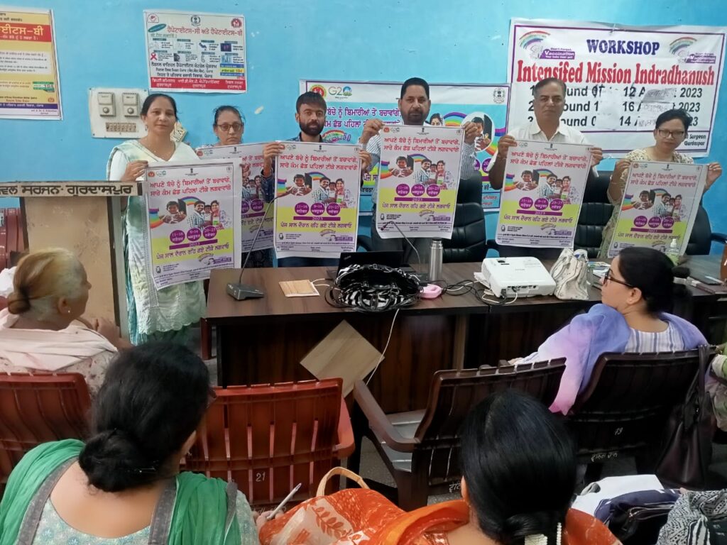 ਇਸ ਮੌਕੇ ਸਿਵਲ ਸਰਜਨ ਡਾ. ਹਰਭਜਨ ਰਾਮ ਜੀ ਨੇ ਕਿਹਾ ਕਿ ਜੋ ਨਵਜੰਮੇ ਬੱਚੇ ਸਰਕਾਰੀ ਸਿਹਤ ਸੰਸਥਾਵਾਂ ਵਿਖੇ ਜਨਮ ਲੈਂਦੇ ਹਨ ਉਨ੍ਹਾਂ ਦਾ ਟੀਕਾਕਰਨ ਜਨਮ ਦੇ 24 ਘੰਟੇ ਦੇ ਅੰਦਰ-ਅੰਦਰ ਹੈਪੇਟਾਇਟਿਸ ਬੀ, ਬੀਸੀਜੀ, ਟੀਕਾਕਰਨ, ਓਰਲ ਪੋਲੀਓ ਬੂੰਦਾਂ ਪਿਲਾਉਣੀਆਂ ਯਕੀਨੀ ਬਣਾਈਆਂ ਜਾਣ ਤੇ ਯੂ-ਵਿਨ ਪੋਰਟਲ ਤੇ ਬੱਚੇ ਦੇ ਟੀਕਾਕਰਨ ਦਾ ਰਿਕਾਰਡ ਦਰਜ ਕੀਤਾ ਜਾਵੇ। ਟੀਕਾਕਰਨ ਦਾ ਰਿਕਾਰਡ 100ਫੀਸਦੀ ਆਨਲਾਈਨ ਕਰਨ ਦਾ ਟੀਚਾ ਰਖਿਆ ਗਿਆ ਹੈ। ਮਹੀਨਾ ਸਤੰਬਰ , ਅਕਤੂਬਰ, ਨਵੰਬਰ ਵਿਚ ਮਿਸ਼ਨ ਇੰਦਰਧਨੁਸ਼ ਪੋ੍ਗਰਾਮ ਤਹਿਤ ਉਨਾਂ ਬਚਿਆਂ ਦਾ ਟੀਕਾਕਰਨ ਕੀਤਾ ਜਾਵੇਗਾ ਜੋ ਕਿਸੇ ਕਾਰਨ ਟੀਕਾਕਰਨ ਤੋ ਵਾਂਝੇ ਰਹਿ ਗਏ ਹਨ। 100ਫੀਸਦੀ ਦਾ ਟੀਚਾ ਪੂਰਾ ਕੀਤਾ ਜਾਵੇਗਾ।