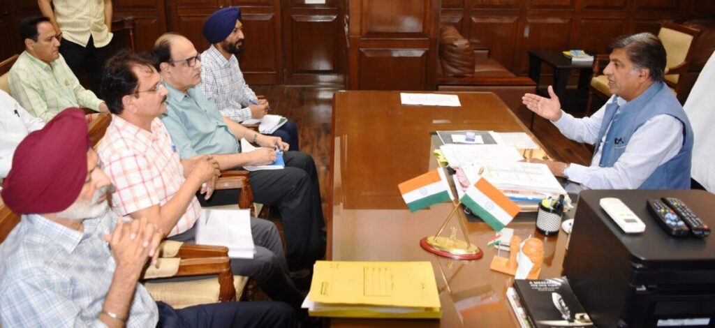 ਚੰਡੀਗੜ੍ਹ, 12 ਅਕਤੂਬਰ 2023 (ਦੀ ਪੰਜਾਬ ਵਾਇਰ)। ਜਲ ਸਪਲਾਈ ਅਤੇ ਸੈਨੀਟੇਸ਼ਨ ਮੰਤਰੀ ਬ੍ਰਮ ਸ਼ੰਕਰ ਜਿੰਪਾ ਨੇ ਵਿਭਾਗ ਦੇ ਉੱਚ ਅਧਿਕਾਰੀਆਂ ਨਾਲ ਆਪਣੇ ਦਫਤਰ ਵਿਚ ਇਕ ਸਮੀਖਿਆ ਮੀਟਿੰਗ ਕੀਤੀ। ਉਨ੍ਹਾਂ ਆਦੇਸ਼ ਦਿੱਤੇ ਕਿ ਪਿੰਡਾਂ ਵਿਚ ਸਾਫ ਤੇ ਸ਼ੁੱਧ ਪਾਣੀ ਦੀ ਸਪਲਾਈ ਲਈ ਜਿੰਨੇ ਵੀ ਪ੍ਰੋਜੈਕਟ ਚੱਲ ਰਹੇ ਹਨ ਉਨ੍ਹਾਂ ਨੂੰ ਸਮੇਂ ਸਿਰ ਪੂਰਾ ਕੀਤਾ ਜਾਵੇ। ਜਿੰਪਾ ਨੇ ਕਿਹਾ ਕਿ ਮੁੱਖ ਮੰਤਰੀ ਭਗਵੰਤ ਸਿੰਘ ਮਾਨ ਦੀ ਅਗਵਾਈ ਵਾਲੀ ਸਰਕਾਰ ਸੂਬੇ ਨੂੰ ‘ਰੰਗਲਾ ਪੰਜਾਬ’ ਬਣਾਉਣ ਲਈ ਯਤਨਸ਼ੀਲ ਹੈ ਅਤੇ ਇਸ ਮਕਸਦ ਲਈ ਪਿੰਡਾਂ ਨੂੰ ਸਾਰੀਆਂ ਸਹੂਲਤਾਂ ਪਹਿਲ ਦੇ ਆਧਾਰ ‘ਤੇ ਦਿੱਤੀਆਂ ਜਾਣ।
