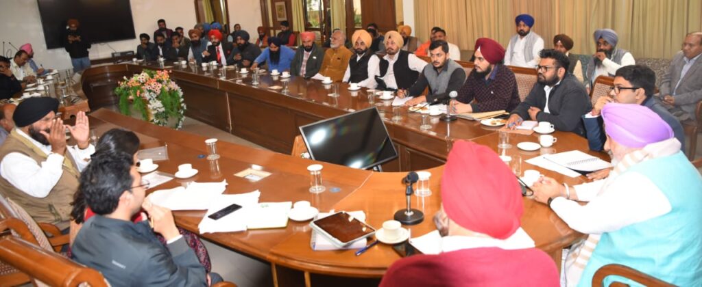 ਚੰਡੀਗੜ੍ਹ, 6 ਦਸੰਬਰ 2023 (ਦੀ ਪੰਜਾਬ ਵਾਇਰ)। ਪੰਜਾਬ ਦੇ ਖਣਨ ਅਤੇ ਭੂ-ਵਿਗਿਆਨ ਮੰਤਰੀ ਸ. ਚੇਤਨ ਸਿੰਘ ਜੌੜਾਮਾਜਰਾ ਵੱਲੋਂ ਸੂਬਾ ਵਾਸੀਆਂ ਨੂੰ ਸਸਤੀਆਂ ਦਰਾਂ ‘ਤੇ ਰੇਤਾ-ਬਜਰੀ ਮਿਲਣਾ ਯਕੀਨੀ ਬਣਾਉਣ, ਗ਼ੈਰ-ਕਾਨੂੰਨੀ ਮਾਈਨਿੰਗ ਨੂੰ ਠੱਲ੍ਹ ਪਾਉਣ ਅਤੇ ਸੂਬੇ ਨੂੰ ਪ੍ਰਦੂਸ਼ਣ-ਮੁਕਤ ਕਰਨ ਲਈ ਪਰਾਲੀ ਦਾ ਨਿਪਟਾਰਾ ਯਕੀਨੀ ਬਣਾਉਣ ਲਈ ਅੱਜ ਕਰੱਸ਼ਰ ਮਾਲਕਾਂ, ਮਾਈਨਿੰਗ ਠੇਕੇਦਾਰਾਂ ਅਤੇ ਭੱਠਾ ਮਾਲਕਾਂ ਨਾਲ ਪੰਜਾਬ ਭਵਨ ਵਿਖੇ ਵੱਖੋ-ਵੱਖ ਹੰਗਾਮੀ ਮੀਟਿੰਗਾਂ ਕੀਤੀਆਂ ਗਈਆਂ।