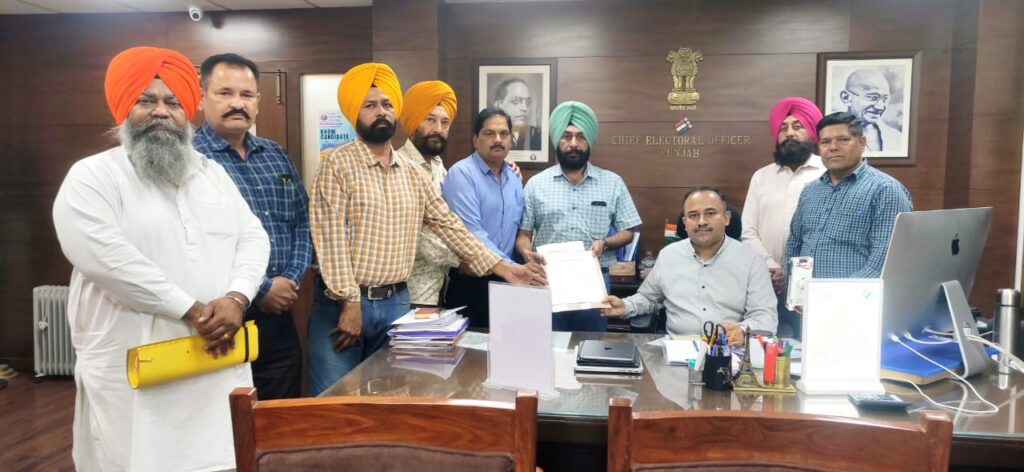 ਮੁਖ ਚੋਣ ਅਫ਼ਸਰ ਨੂੰ ਮਿਲੇ ਵਫ਼ਦ ‘ਚ ਉਪਰੋਕਤ ਤੋਂ ਇਲਾਵਾ ਹਰਕ੍ਰਿਸ਼ਨ ਸਿੰਘ ਮੁਹਾਲੀ , ਤਰਸੇਮ ਲਾਲ ਜਲੰਧਰ, ਜਨਕ ਰਾਜ ਮੁਹਾਲੀ, ਰਿਸ਼ੀ ਕੁਮਾਰ ਜਲੰਧਰ, ਜਤਿੰਦਰ ਪੰਡਿਤ ਚਮਕੌਰ ਸਾਹਿਬ, ਜਗਤਾਰ ਸਿੰਘ ਮੁਹਾਲੀ, ਬਲਵੰਤ ਸਿੰਘ ਕੋਟਲੀ ਰੋਪੜ ਸਮੇਤ ਹੋਰ ਆਗੂ ਵੀ ਸ਼ਾਮਿਲ ਸਨ।