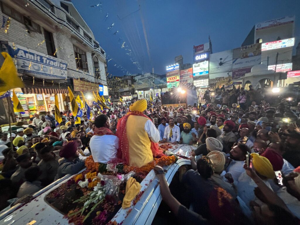 ਜਲੰਧਰ/ਚੰਡੀਗੜ੍ਹ, 26 ਅਪ੍ਰੈਲ 2024 (ਦੀ ਪੰਜਾਬ ਵਾਇਰ)। ਮੁੱਖ ਮੰਤਰੀ ਭਗਵੰਤ ਮਾਨ ਨੇ ਸ਼ੁੱਕਰਵਾਰ ਸ਼ਾਮ ਜਲੰਧਰ ‘ਚ ਆਮ ਆਦਮੀ ਪਾਰਟੀ (ਆਪ) ਦੇ ਉਮੀਦਵਾਰ ਪਵਨ ਕੁਮਾਰ ਟੀਨੂੰ ਲਈ ਚੋਣ ਪ੍ਰਚਾਰ ਕੀਤਾ। ਭਗਵੰਤ ਮਾਨ ਨੇ ਜਲੰਧਰ ਸ਼ਹਿਰ ਦੇ ਵੱਖ-ਵੱਖ ਇਲਾਕਿਆਂ ਵਿੱਚ ਰੋਡ ਸ਼ੋਅ ਕੀਤੇ ਅਤੇ ਲੋਕਾਂ ਨੂੰ ਪਵਨ ਕੁਮਾਰ ਟੀਨੂੰ ਨੂੰ ਭਾਰੀ ਵੋਟਾਂ ਨਾਲ ਜਿਤਾਉਣ ਦੀ ਅਪੀਲ ਕੀਤੀ।