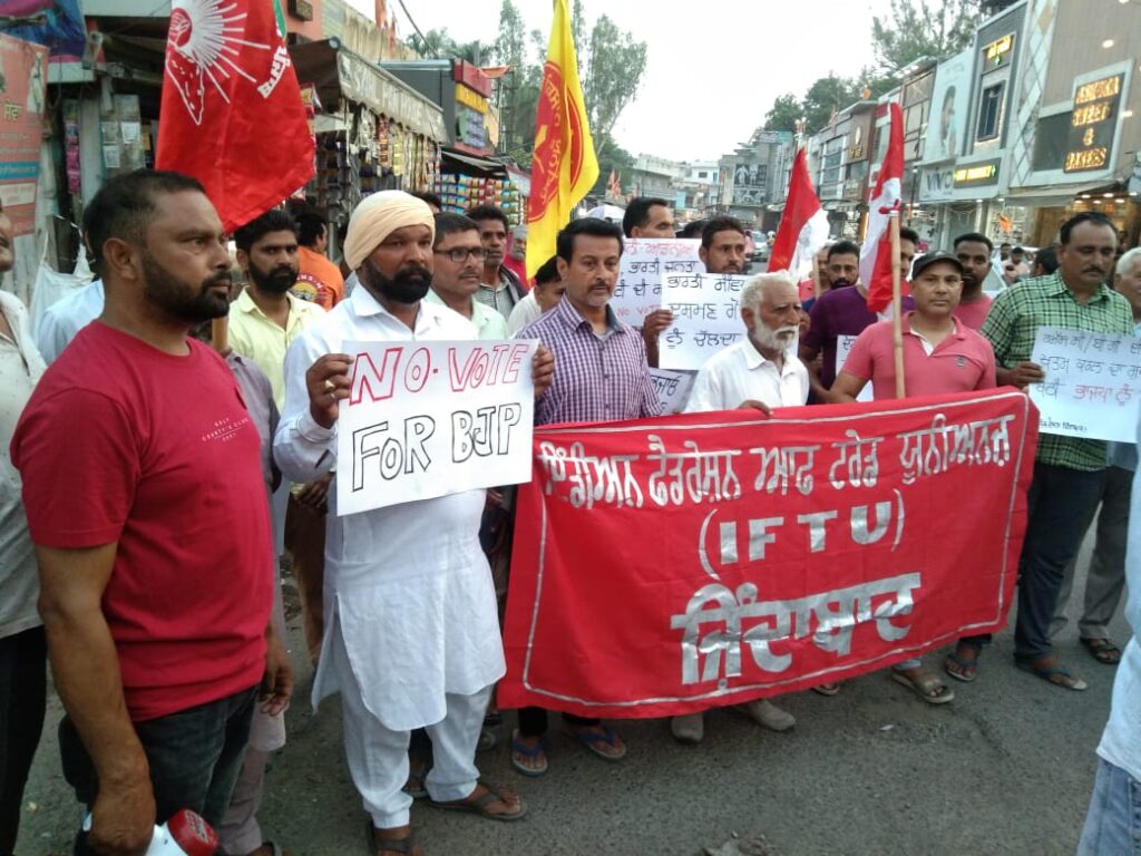 ਉਹ ਲੋਕ ਸਭਾ ਚੋਣਾਂ ਰਾਹੀਂ ਹਿੰਦੂ ਰਾਸ਼ਟਰ ਬਣਾਉਣ ਜਾ ਰਹੇ ਹਨ ਅਤੇ ਫਾਸੀਵਾਦੀ ਹਮਲੇ ਨੂੰ ਤੇਜ਼ ਕਰਨ ਅਤੇ ਘੱਟ ਗਿਣਤੀਆਂ, ਔਰਤਾਂ, ਦਲਿਤਾਂ ਅਤੇ ਪਛੜੇ ਵਰਗ ਦੇ ਮਜ਼ਦੂਰਾਂ ਦੇ ਅਧਿਕਾਰਾਂ ਦੀ ਉਲੰਘਣਾ ਕਰਨ ਤੋਂ ਪਿੱਛੇ ਨਹੀਂ ਹਟ ਰਹੇ ਹਨ। ਇਸ ਮੌਕੇ ਪੰਜਾਬ ਸਟੂਡੈਂਟਸ ਯੂਨੀਅਨ ਦੇ ਸੂਬਾ ਮੀਤ ਪ੍ਰਧਾਨ ਅਮਰ ਕ੍ਰਾਂਤੀ ਨੇ ਕਿਹਾ ਕਿ ਭਾਜਪਾ ਪਾਰਟੀ ਨੂੰ ਭਜਾਉਣ ਅਤੇ ਹਰਾਉਣ ਲਈ ਲੋਕਾਂ ਨੂੰ ਜਾਗਰੂਕ ਹੋਣ ਦੀ ਲੋੜ ਹੈ। ਕਿਉਂਕਿ ਉਹ ਆਪਣੀ ਫਾਸ਼ੀਵਾਦੀ ਸੋਚ ਨੂੰ ਲਾਗੂ ਕਰਨ ਲਈ ਨਵੀਂ ਸਿੱਖਿਆ ਨੀਤੀ ਲਿਆ ਰਹੇ ਹਨ। ਕਿਰਤ ਕਾਨੂੰਨਾਂ ਵਿੱਚ ਸੋਧਾਂ ਕਰਕੇ ਮਜ਼ਦੂਰਾਂ ਦੇ ਹੱਕਾਂ ’ਤੇ ਕਟੌਤੀ ਕੀਤੀ ਗਈ ਹੈ। ਕਿਸਾਨ ਸੰਘਰਸ਼ ਨੇ ਤਿੰਨ ਕਾਲੇ ਕਾਨੂੰਨ ਪਾਸ ਕਰਕੇ ਕਿਸਾਨਾਂ ਦੀਆਂ ਜ਼ਮੀਨਾਂ ਖੋਹਣ ਦੀ ਯੋਜਨਾ ਨੂੰ ਨਾਕਾਮ ਕਰ ਦਿੱਤਾ। ਇਸ ਲਈ ਭਾਜਪਾ ਨੂੰ ਹਰਾਉਣ ਅਤੇ ਭਜਾਉਣ ਲਈ ਜਨਤਕ ਲਾਮਬੰਦੀ ਦੀ ਸਖ਼ਤ ਲੋੜ ਹੈ।
