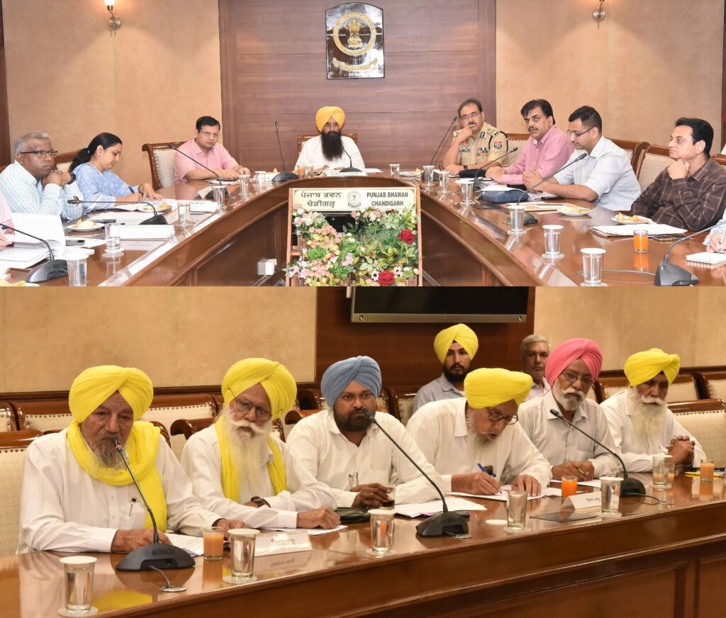 ਸ. ਗੁਰਮੀਤ ਸਿੰਘ ਖੁੱਡੀਆਂ ਨੇ ਅੱਜ ਇੱਥੇ ਪੰਜਾਬ ਭਵਨ ਵਿਖੇ ਮੁੱਖ ਸਕੱਤਰ ਸ੍ਰੀ ਅਨੁਰਾਗ ਵਰਮਾ, ਸਪੈਸ਼ਲ ਡੀ.ਜੀ.ਪੀ. (ਕਾਨੂੰਨ ਅਤੇ ਵਿਵਸਥਾ) ਅਰਪਿਤ ਸ਼ੁਕਲਾ ਅਤੇ ਸੂਬਾ ਸਰਕਾਰ ਦੇ ਹੋਰ ਸੀਨੀਅਰ ਅਧਿਕਾਰੀਆਂ ਸਮੇਤ ਭਾਰਤੀ ਕਿਸਾਨ ਯੂਨੀਅਨ (ਉਗਰਾਹਾਂ) ਅਤੇ ਪੰਜਾਬ ਖੇਤੀ ਮਜ਼ਦੂਰ ਯੂਨੀਅਨ ਦੇ ਆਗੂਆਂ ਨਾਲ ਮੀਟਿੰਗ ਕੀਤੀ। ਇਸ ਮੀਟਿੰਗ ਦਾ ਉਦੇਸ਼ ਪੰਜਾਬ ਖੇਤੀਬਾੜੀ ਨੀਤੀ ਸਬੰਧੀ ਉਨ੍ਹਾਂ ਦੀਆਂ ਚਿੰਤਾਵਾਂ ਬਾਰੇ ਜਾਨਣਾ ਅਤੇ ਸੁਝਾਅ ਲੈਣਾ ਸੀ।