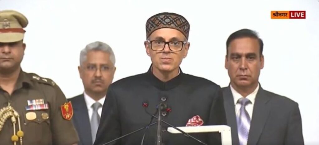 2009 ਤੋਂ ਬਾਅਦ ਉਮਰ ਅਬਦੁੱਲਾ ਦਾ ਮੁੱਖ ਮੰਤਰੀ ਵਜੋਂ ਇਹ ਦੂਜਾ ਕਾਰਜਕਾਲ ਹੈ; ਕਾਂਗਰਸ ਦੇ ਕਿਸੇ ਵੀ ਚੁਣੇ ਹੋਏ ਮੈਂਬਰ ਨੇ ਅੱਜ ‘ਰਾਜ ਦਾ ਦਰਜਾ ਬਹਾਲ ਕਰਨ ਦੇ ਰੋਸ ਵਜੋਂ’ ਸਹੁੰ ਨਹੀਂ ਚੁੱਕੀ।