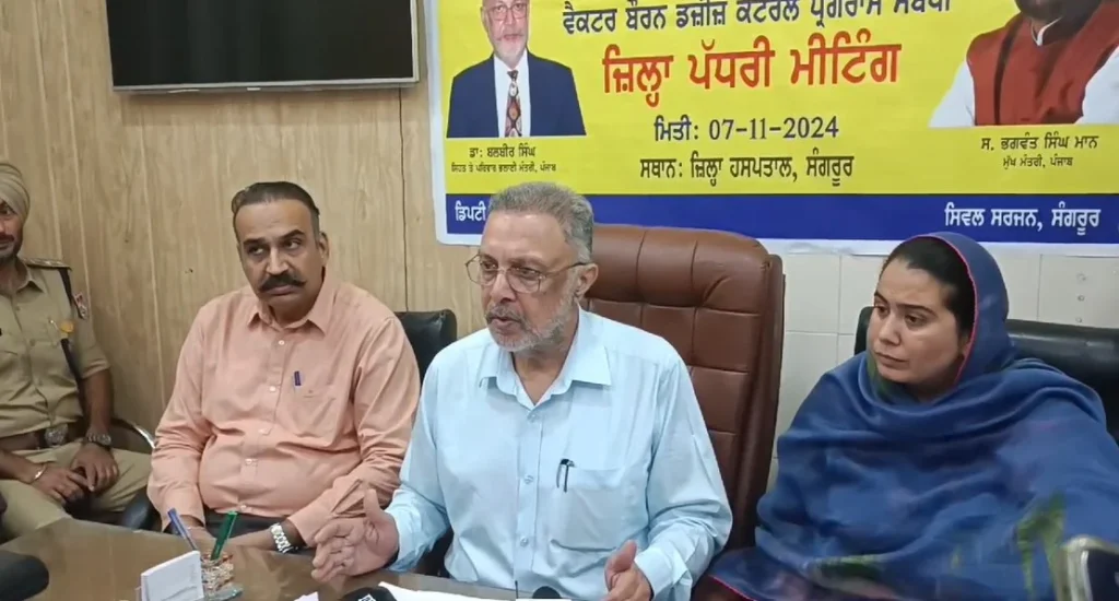 ਸਿਹਤ ਤੇ ਪਰਿਵਾਰ ਭਲਾਈ ਮੰਤਰੀ ਵੱਲੋਂ ਵੈਕਟਰ ਬੋਰਨ ਡਿਜ਼ੀਜ ਕੰਟਰੋਲ ਪ੍ਰੋਗਰਾਮ ਤਹਿਤ ਸੰਗਰੂਰ ਵਿਖੇ ਜ਼ਿਲ੍ਹਾ ਪੱਧਰੀ ਮੀਟਿੰਗ ਵਿੱਚ ਸ਼ਿਰਕਤ