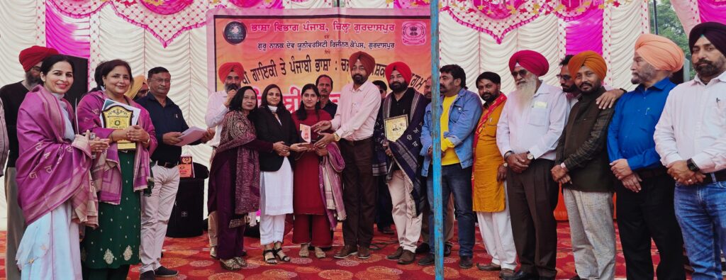 ਗੁਰਦਾਸਪੁਰ, 14 ਨਵੰਬਰ 2024 ( ਦੀ ਪੰਜਾਬ ਵਾਇਰ)। ਪੰਜਾਬ ਸਰਕਾਰ ਦੁਆਰਾ ਮਨਾਏ ਜਾ ਰਹੇ ਪੰਜਾਬੀ ਮਾਹ-2024 ਦੇ ਸਮਾਗਮਾਂ ਦੀ ਲੜੀ ਤਹਿਤ ਉਚੇਰੀ ਸਿੱਖਿਆ ਤੇ ਭਾਸ਼ਾਵਾਂ ਵਿਭਾਗ ਵੱਲੋਂ ਡਾਇਰੈਕਟਰ ਭਾਸ਼ਾ ਵਿਭਾਗ ਸ੍ਰ.ਜਸਵੰਤ ਸਿੰਘ ਜ਼ਫ਼ਰ ਦੇ ਦਿਸ਼ਾ- ਨਿਰਦੇਸ਼ਾਂ ਅਤੇ ਗੁਰਦਾਸਪੁਰ ਦੇ ਜ਼ਿਲ੍ਹਾ ਭਾਸ਼ਾ ਅਫ਼ਸਰ ਡਾ. ਪਰਮਜੀਤ ਸਿੰਘ ਕਲਸੀ ਨੈਸ਼ਨਲ ਅਵਾਰਡੀ ਦੀ ਅਗਵਾਈ ਹੇਠ ਗੁਰੂ ਨਾਨਕ ਦੇਵ ਯੂਨੀਵਰਸਿਟੀ ਰਿਜੀਨਲ ਕੈਂਪਸ ਵਿਖੇ ਡਾ. ਅਮਰਦੀਪ ਕੌਰ ਡੀਨ ਅਕਾਦਮਿਕ ਮਾਮਲੇ ਦੇ ਸਹਿਯੋਗ ਨਾਲ ‘ਪੰਜਾਬੀ ਗਾਇਕੀ ਤੇ ਪੰਜਾਬੀ ਭਾਸ਼ਾ:ਚਰਚਾ ਤੇ ਪੇਸ਼ਕਾਰੀ’ ਸਬੰਧੀ ਕਰਾਇਆ ਗਿਆ ਸਾਹਿਤਕ ਤੇ ਸੱਭਿਆਚਾਰਕ ਸਮਾਗਮ ਇਤਿਹਾਸਕ ਤੇ ਯਾਦਗਾਰੀ ਰਿਹਾ।