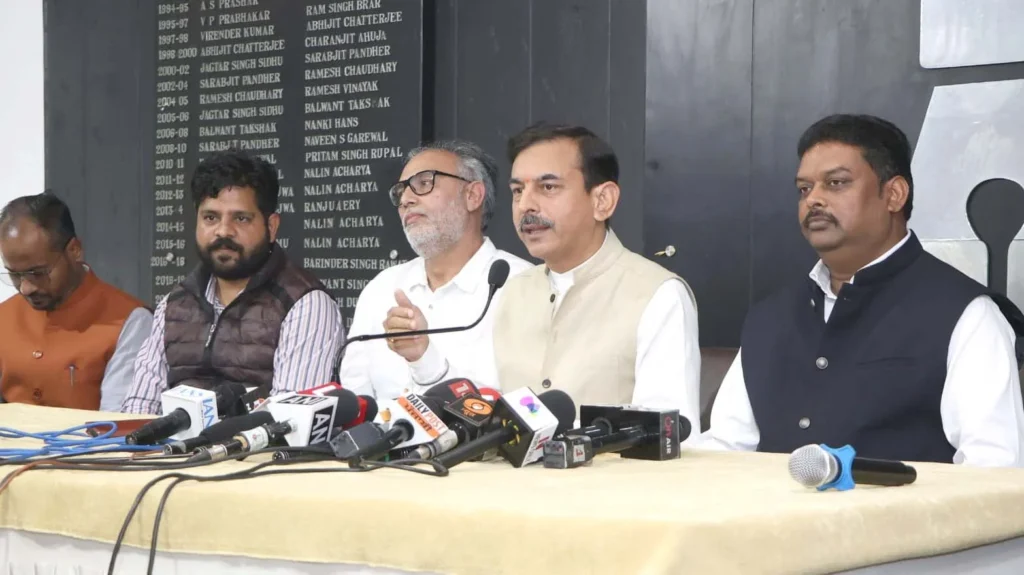 ਚੰਡੀਗੜ੍ਹ, 19 ਨਵੰਬਰ 2024 (ਦੀ ਪੰਜਾਬ ਵਾਇਰ )। ਜੇਕਰ ਪੰਜਾਬ ਸਰਕਾਰ ਆਪਣੀ ਆਉਣ ਵਾਲੀ ਕੈਬਨਿਟ ਮੀਟਿੰਗ ਵਿੱਚ ਜੰਗਲਾਤ ਅਤੇ ਜੰਗਲੀ ਜੀਵ ਸੁਰੱਖਿਆ ਵਿਭਾਗ, ਪੰਜਾਬ ਦੇ ਪ੍ਰਸਤਾਵਿਤ ਨੋਟੀਫਿਕੇਸ਼ਨ ਨੂੰ ਮਨਜ਼ੂਰੀ ਦਿੰਦੀ ਹੈ, ਤਾਂ ਨਵਾਂਗਾਓਂ ਨਗਰ ਕੌਂਸਲ ਅਧੀਨ ਆਉਂਦੇ ਕਾਂਸਲ, ਨਵਾਂਗਾਓਂ, ਕਰੌਰਾਂ ਅਤੇ ਨਾਡਾ ਦੇ ਮਕਾਨ, ਦੁਕਾਨਾਂ, ਹਸਪਤਾਲਾਂ, ਧਾਰਮਿਕ ਸਥਾਨਾਂ ਅਤੇ ਹੋਟਲਾਂ ਲਈ ਮੁਸ਼ਕਲਾਂ ਖੜ੍ਹੀਆਂ ਹੋ ਸਕਦੀਆਂ ਹਨ ਤੇ ਇਨ੍ਹਾਂ ਨੂੰ ਢਾਹੁਣ ਦੀ ਲੋੜ ਪੈ ਸਕਦੀ ਹੈ । ਇਹ ਗੱਲ ਪੰਜਾਬ ਭਾਜਪਾ ਦੇ ਸੀਨੀਅਰ ਆਗੂ ਵਿਨੀਤ ਜੋਸ਼ੀ ਨੇ ਨਵਾਂਗਾਓਂ ਨਗਰ ਕੌਂਸਲ ਦੇ ਕੌਂਸਲਰਾਂ ਅਤੇ ਆਗੂਆਂ ਨਾਲ ਪ੍ਰੈਸ ਕਾਨਫਰੰਸ ਨੂੰ ਸੰਬੋਧਨ ਕਰਦਿਆਂ ਕਹੀ। ਉਨਾਂ ਦੇ ਨਾਲ ਨਵਾਂਗਾਓਂ ਨਗਰ ਕੌਂਸਲਰ ਸੁਰਿੰਦਰ ਕੌਸ਼ੀਸ਼ ਬੱਬਲ, ਕੌਂਸਲਰ ਪ੍ਰਮੋਦ ਕੁਮਾਰ, ਕੌਂਸਲਰ ਬਬਲੂ ਕੋਰੀ, ਉੱਘੇ ਸਮਾਜ ਸੇਵੀ ਅਤੁਲ ਅਰੋੜਾ, ਮਜ਼ਦੂਰ ਸੈਨਾ ਦੇ ਜਨਰਲ ਸਕੱਤਰ ਮਦਨ ਮੰਡਲ, ਬ੍ਰਹਮਾ ਕੁਮਾਰੀ ਨਵਾਂਗਾਓਂ ਦੇ ਮੁਖੀ ਗਿਆਨ ਚੰਦ ਭੰਡਾਰੀ, ਛਠ ਪੂਜਾ ਕਮੇਟੀ ਕਾਮੇਸ਼ਵਰ ਸਾਹ, ਗਊ ਸੇਵਾ ਮੁਖੀ ਨਯਾਗਾਂਵ ਸੁਸ਼ੀਲ ਰੋਹਿਲਾ ਹਾਜੀਰ ਸਨ ।