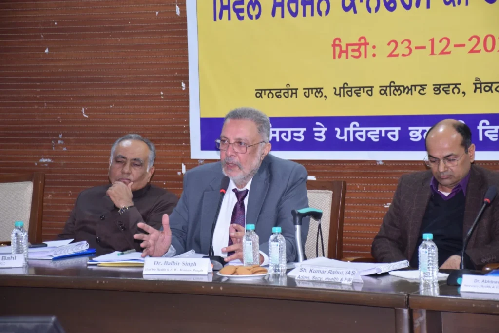 ਅੱਜ ਇੱਥੇ ਸਿਵਲ ਸਰਜਨਾਂ ਲਈ ਇੱਕ ਕਾਨਫਰੰਸ-ਕਮ-ਸਿਖਲਾਈ ਵਰਕਸ਼ਾਪ ਦੀ ਪ੍ਰਧਾਨਗੀ ਕਰਦਿਆਂ ਸਿਹਤ ਮੰਤਰੀ ਨੇ ਸਾਰੇ ਸਿਵਲ ਸਰਜਨਾਂ ਦੀ ਕਾਰਗੁਜ਼ਾਰੀ ਦੀ ਸਮੀਖਿਆ ਵੀ ਕੀਤੀ। ਉਨ੍ਹਾਂ ਜ਼ੋਰ ਦੇ ਕੇ ਕਿਹਾ ਕਿ ਡਾਕਟਰਾਂ ਅਤੇ ਹਸਪਤਾਲ ਦੇ ਸਟਾਫ਼ ਨੂੰ ਸਰਕਾਰੀ ਸਿਹਤ ਸੰਸਥਾਵਾਂ ਵਿੱਚ ਲੋਕਾਂ ਦੇ ਵਿਸ਼ਵਾਸ਼ ਨੂੰ ਹੋਰ ਮਜਬੂਤ ਕਰਨ ਲਈ ਮਰੀਜਾਂ ਅਤੇ ਉਹਨਾਂ ਨਾਲ ਦੇਖਭਾਲ ਲਈ ਆਉਣ ਵਾਲੇ ਵਿਅਕਤੀਆਂ ਪ੍ਰਤੀ ਨਿਮਰਤਾ ਵਾਲਾ ਵਤੀਰਾ ਰੱਖਣਾ ਚਾਹੀਦਾ ਹੈ।