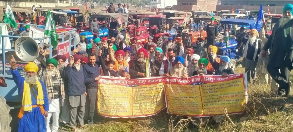 ਗੁਰਦਾਸਪੁਰ, 26 ਜਨਵਰੀ (ਦੀ ਪੰਜਾਬ ਵਾਇਰ)– ਇੱਕ ਪਾਸੇ ਜਿੱਥੇ ਦੇਸ਼ ਗਣਤੰਤਰ ਦਿਵਸ ਤੇ ਆਜ਼ਾਦੀ ਦੇ ਜਸ਼ਨ ਮਨਾ ਰਿਹਾ ਸੀ ਉੱਥੇ ਦੂਜੇ ਪਾਸੇ ਸਾਰੇ ਦੇਸ਼ ਵਿੱਚ ਕਿਸਾਨ ਟਰੈਕਟਰ ਲੈ ਕੇ ਸੜਕਾਂ ਤੇ ਗੇੜੇ ਲਾ ਕੇ ਆਪਣਾ ਰੋਸ ਵਿਖਾਵਾ ਕਰ ਰਹੇ ਸਨ। ਕਿਸਾਨ ਮੁੱਖ ਮੰਗ ਸਵਾਮੀਨਾਥਨ ਕਮਿਸ਼ਨ ਮੁਤਾਬਕ ਫਸਲਾਂ ਦੇ ਘੱਟੋ ਘੱਟ ਸਮਰਥਨ ਮੁੱਲ ਦੀ ਸਰਕਾਰੀ ਖਰੀਦ ਦੀ ਗਰੰਟੀ ਦਾ ਕਾਨੂੰਨ ਬਣਾਉਣ ਦੀ ਮੰਗ ਕਰ ਰਹੇ ਸਨ ਨਾਲ ਹੀ ਕਿਸਾਨ ਮੰਗ ਕਰ ਰਹੇ ਸਨ ਕਿ ਕੌਮੀ ਮੰਡੀਕਰਨ ਸੇਵਾ ਖਰੜਾ ਫੌਰੀ ਵਾਪਸ ਲਿਆ ਜਾਵੇ ਜਿਹੜਾ ਫਿਰ ਤੋਂ ਉਹੀ ਤਿੰਨ ਕਾਲੇ ਕਾਨੂੰਨਾਂ ਦਾ ਬਦਲਿਆ ਰੂਪ ਹੈ ਜਿਹੜੇ ਸੰਯੁਕਤ ਕਿਸਾਨ ਮੋਰਚੇ ਨੇ ਦਿੱਲੀ ਦੇ ਬਾਰਡਰਾਂ ਤੇ ਬਹਿ ਕੇ ਇਤਿਹਾਸਿਕ ਲੰਬਾ ਸੰਘਰਸ਼ ਲੜ ਕੇ ਰੱਦ ਕਰਾਏ ਸਨ। ਕਿਸਾਨ ਇਹ ਮੰਗ ਵੀ ਕਰ ਰਹੇ ਸਨ ਕਿ ਮਰਨ ਵਰਤ ਤੇ ਬੈਠੇ ਕਿਸਾਨ ਆਗੂ ਡਲੇਵਾਲ ਦੀ ਜਾਨ ਬਚਾਉਣ ਲਈ ਮੰਗਾਂ ਸਬੰਧੀ 14 ਫਰਵਰੀ ਦੀ ਤਰੀਕ ਬਦਲ ਕੇ ਪਹਿਲਾਂ ਕੀਤੀ ਜਾਵੇ ਅਤੇ ਗੱਲਬਾਤ ਕਰਕੇ ਸਾਰੀਆਂ ਮੰਗਾਂ ਦਾ ਐਲਾਨ ਕੀਤਾ ਜਾਵੇ।