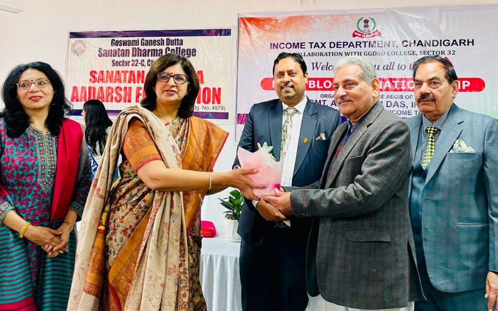 ਚੰਡੀਗੜ੍ਹ, 21 ਫਰਵਰੀ 2025 ( ਦੀ ਪੰਜਾਬ ਵਾਇਰ)। ਆਮਦਨ ਕਰ ਵਿਭਾਗ, ਚੰਡੀਗੜ੍ਹ ਵੱਲੋਂ ਖੂਨਦਾਨ ਕੈਂਪ ਲਗਾਇਆ ਗਿਆ ਜਿਸ ਦਾ ਉਦਘਾਟਨ ਮੁੱਖ ਮਹਿਮਾਨ ਵਜੋਂ ਡੀ.ਜੀ.ਆਈ.ਟੀ. (ਇਨਵ), ਐਨ.ਡਬਲਯੂ.ਆਰ. ਮੋਨਿਕਾ ਭਾਟੀਆ ਨੇ ਕੀਤਾ। ਇਹ ਕੈਂਪ ਜੀ.ਜੀ.ਡੀ.ਐਸ.ਡੀ. ਕਾਲਜ, ਸੈਕਟਰ-32, ਚੰਡੀਗੜ੍ਹ ਦੇ ਸਹਿਯੋਗ ਨਾਲ ਕਾਲਜ ਕੈਂਪਸ ਵਿਖੇ ਕਰਵਾਇਆ ਗਿਆ ਸੀ।