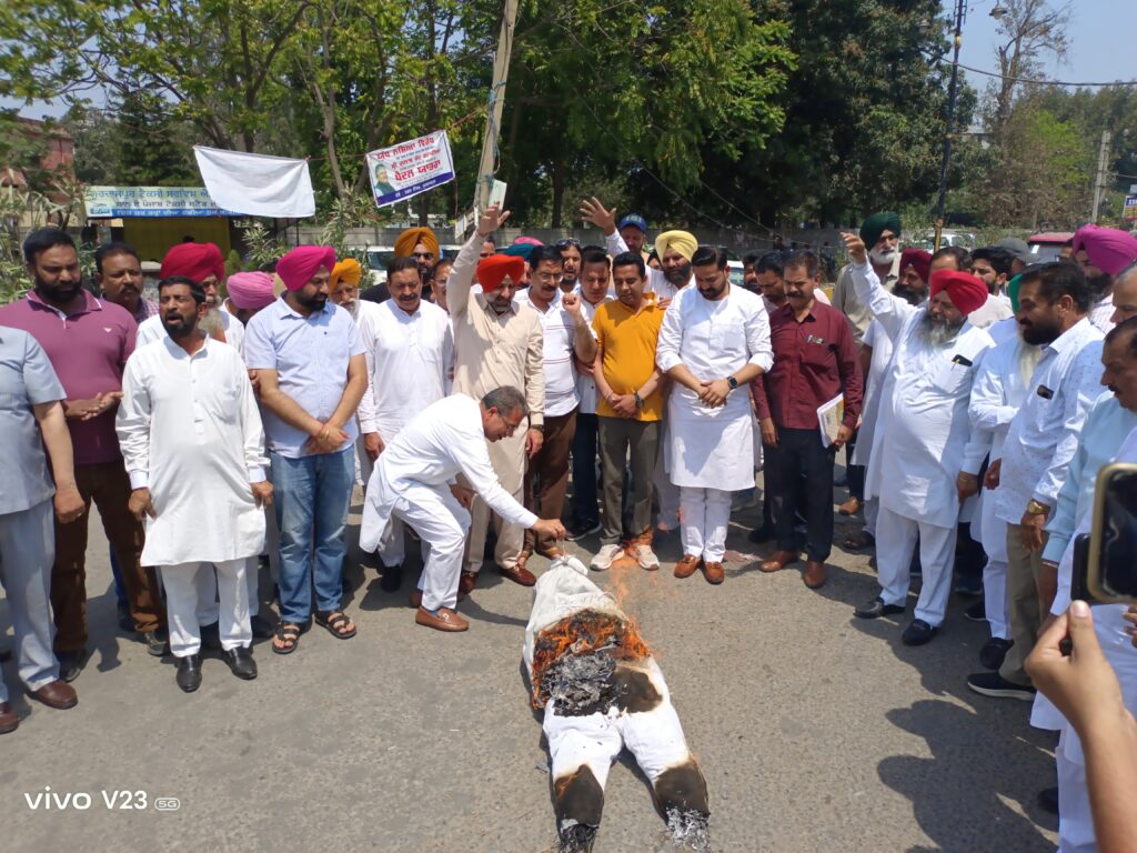 ਗੁਰਦਾਸਪੁਰ, 14 ਅਪ੍ਰੈਲ 2025 (ਦੀ ਪੰਜਾਬ ਵਾਇਰ)। ਵਿਧਾਨ ਸਭਾ ਵਿੱਚ ਵਿਰੋਧੀ ਧਿਰ ਦੇ ਨੇਤਾ ਪ੍ਰਤਾਪ ਸਿੰਘ ਬਾਜਵਾ ਵੱਲੋਂ ਪੰਜਾਬ ਵਿੱਚ ਅਜੇ ਵੀ 32 ਗਰਨੇਡ ਹੋਣ ਦੇ ਬਿਆਨ ਤੋਂ ਬਾਅਦ ਪੰਜਾਬ ਸਰਕਾਰ ਵੱਲੋਂ ਕੇਸ ਦਰਜ ਕਰਨ ਦੇ ਵਿਰੋਧ ਵਿੱਚ ਅੱਜ ਕਾਂਗਰਸ ਪਾਰਟੀ ਵੱਲੋਂ ਜ਼ਿਲ੍ਹਾ ਪ੍ਰਧਾਨ ਅਤੇ ਗੁਰਦਾਸਪੁਰ ਹਲਕੇ ਦੇ ਵਿਧਾਇਕ ਬਰਿੰਦਰਮੀਤ ਸਿੰਘ ਪਾਹੜਾ ਦੀ ਅਗਵਾਈ ਵਿੱਚ ਪੰਜਾਬ ਸਰਕਾਰ ਦਾ ਪੁਤਲਾ ਫੂਕ ਕੇ ਰੋਸ ਪ੍ਰਦਰਸ਼ਨ ਕੀਤਾ ਗਿਆ।