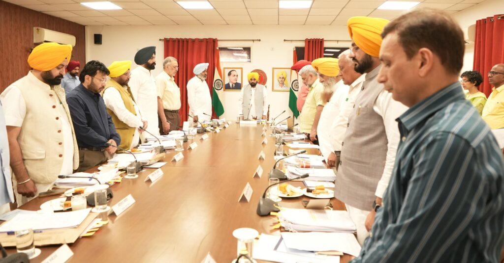 ਚੰਡੀਗੜ੍ਹ, 24 ਅਪ੍ਰੈਲ 2025 (ਦੀ ਪੰਜਾਬ ਵਾਇਰ)। ਮੁੱਖ ਮੰਤਰੀ ਭਗਵੰਤ ਸਿੰਘ ਮਾਨ ਦੀ ਅਗਵਾਈ ਹੇਠ ਪੰਜਾਬ ਮੰਤਰੀ ਮੰਡਲ ਨੇ ਮੀਟਿੰਗ ਦੀ ਸ਼ੁਰੂਆਤ ਵਿੱਚ ਪਹਿਲਗਾਮ (ਜੰਮੂ ਤੇ ਕਸ਼ਮੀਰ) ਵਿੱਚ ਹੋਏ ਦਹਿਸ਼ਤੀ ਹਮਲੇ ਦੇ ਸ਼ਹੀਦਾਂ ਨੂੰ ਸ਼ਰਧਾਂਜਲੀ ਭੇਟ ਕੀਤੀ।