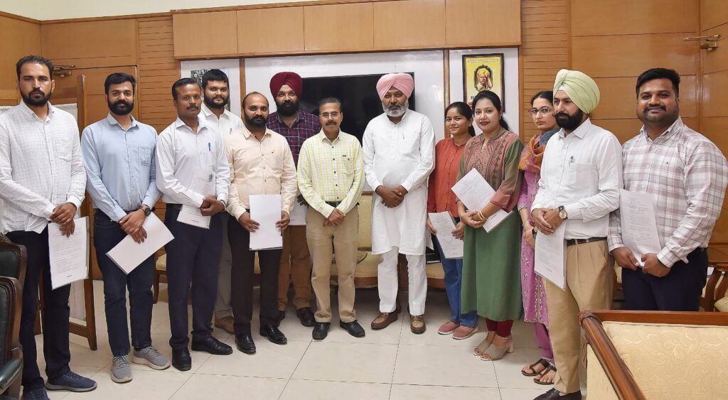 ਪੰਜਾਬ ਸਿਵਲ ਸਕੱਤਰੇਤ ਵਿੱਚ ਆਪਣੇ ਦਫ਼ਤਰ ਵਿਖੇ ਇੱਕ ਸਧਾਰਨ ਪਰ ਪ੍ਰਭਾਵਸ਼ਾਲੀ ਨਿਯੁਕਤੀ ਪੱਤਰ ਵੰਡ ਸਮਾਰੋਹ ਦੌਰਾਨ ਵਿੱਤ ਮੰਤਰੀ ਹਰਪਾਲ ਸਿੰਘ ਚੀਮਾ ਨੇ ਮੁੱਖ ਮੰਤਰੀ ਭਗਵੰਤ ਸਿੰਘ ਮਾਨ ਦੀ ਅਗਵਾਈ ਵਾਲੀ ਪੰਜਾਬ ਸਰਕਾਰ ਦੀ ਪਾਰਦਰਸ਼ੀ ਅਤੇ ਮਜ਼ਬੂਤ ਵਿੱਤੀ ਪ੍ਰਸ਼ਾਸਨ ਪ੍ਰਤੀ ਵਚਨਬੱਧਤਾ ਨੂੰ ਦੁਹਰਾਇਆ। ਉਨ੍ਹਾਂ ਵਿਸ਼ਵਾਸ ਪ੍ਰਗਟ ਕੀਤਾ ਕਿ ਨਵ-ਨਿਯੁਕਤ ਸੈਕਸ਼ਨ ਅਧਿਕਾਰੀ ਪੰਜਾਬ ਸਰਕਾਰ ਵੱਲੋਂ ਚਲਾਈਆਂ ਜਾ ਰਹੀਆਂ ਭਲਾਈ ਸਕੀਮਾਂ ਦੇ ਨਿਰਵਿਘਨ ਲਾਗੂਕਰਨ ਨੂੰ ਯਕੀਨੀ ਬਣਾਉਣ ਅਤੇ ਹਰ ਪੱਧਰ ‘ਤੇ ਕੁਸ਼ਲਤਾ ਅਤੇ ਜਵਾਬਦੇਹੀ ਨੂੰ ਉਤਸ਼ਾਹਿਤ ਕਰਨ ਵਿੱਚ ਮਹੱਤਵਪੂਰਨ ਭੂਮਿਕਾ ਨਿਭਾਉਣਗੇ।