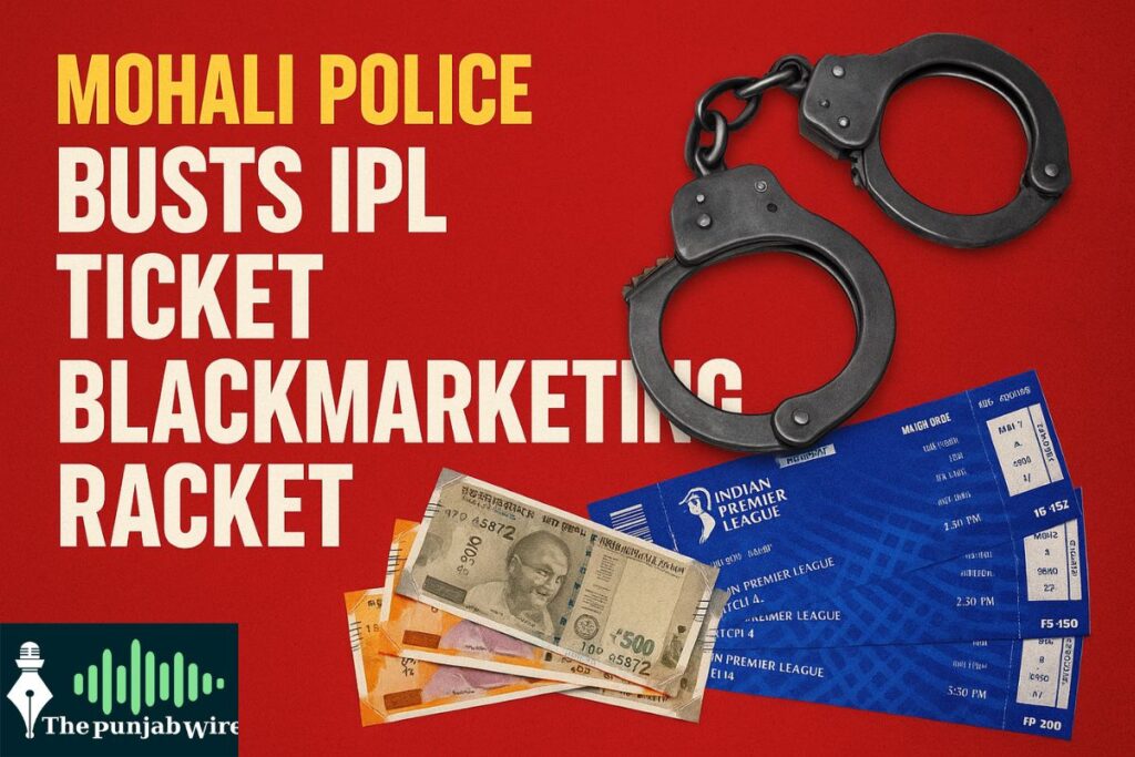 ਸਾਹਿਬਜ਼ਾਦਾ ਅਜੀਤ ਸਿੰਘ ਨਗਰ, 30 ਮਈ, 2025 (ਦੀ ਪੰਜਾਬ ਵਾਇਰ)। ਮੁਹਾਲੀ ਪੁਲਿਸ ਨੇ ਤੈਅ ਕੀਮਤ ਤੋਂ ਵਧੀਕ ਕੀਮਤ ‘ਤੇ ਆਈ ਪੀ ਐਲ ਟਿਕਟਾਂ ਦੀ ਗੈਰ-ਕਾਨੂੰਨੀ ਵਿਕਰੀ ਨਾਲ ਸਬੰਧਤ ਇੱਕ ਕਾਲਾਬਾਜ਼ਾਰੀ ਗਰੋਹ ਦਾ ਸਫਲਤਾਪੂਰਵਕ ਪਰਦਾਫਾਸ਼ ਕੀਤਾ ਹੈ। ਇਸ ਮਾਮਲੇ ਦੇ ਸਬੰਧ ਵਿੱਚ ਤਿੰਨ ਵਿਅਕਤੀਆਂ ਨੂੰ ਗ੍ਰਿਫ਼ਤਾਰ ਕੀਤਾ ਗਿਆ ਹੈ।