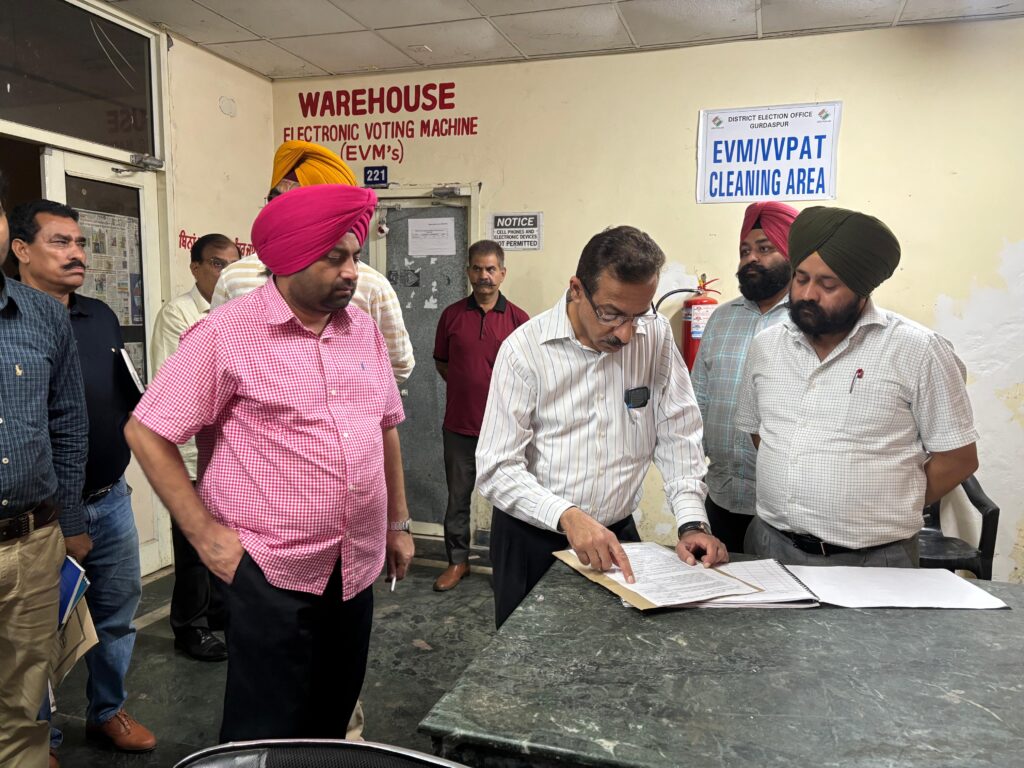 ਗੁਰਦਾਸਪੁਰ, 26 ਜੂਨ 2025 (ਦੀ ਪੰਜਾਬ ਵਾਇਰ) । ਮਾਣਯੋਗ ਭਾਰਤ ਚੋਣ ਕਮਿਸ਼ਨ ਦੀਆਂ ਹਦਾਇਤਾਂ ਅਨੁਸਾਰ ਵਧੀਕ ਮੁੱਖ ਚੋਣ ਅਫ਼ਸਰ, ਪੰਜਾਬ, ਸ੍ਰੀ ਹਰੀਸ਼ ਨਈਅਰ, ਆਈ.ਏ.ਐੱਸ. ਵੱਲੋਂ ਅੱਜ ਜ਼ਿਲ੍ਹਾ ਪ੍ਰਬੰਧਕੀ ਕੰਪਲੈਕਸ ਗੁਰਦਾਸਪੁਰ ਦੇ ਬਲਾਕ-ਬੀ ਵਿਖੇ ਵੋਟਿੰਗ ਮਸ਼ੀਨਾਂ ਦੇ ਵੇਅਰਹਾਊਸ ਦਾ ਨਿਰੀਖਣ ਕੀਤਾ ਗਿਆ। ਇਸ ਮੌਕੇ ਉਨ੍ਹਾਂ ਨਾਲ ਸ੍ਰੀ ਹਰਜਿੰਦਰ ਸਿੰਘ ਬੇਦੀ, ਆਈ.ਏ.ਐੱਸ. ਵਧੀਕ ਜ਼ਿਲ੍ਹਾ ਚੋਣ ਅਫ਼ਸਰ-ਕਮ-ਵਧੀਕ ਡਿਪਟੀ ਕਮਿਸ਼ਨਰ (ਜ) ਗੁਰਦਾਸਪੁਰ, ਸ. ਮਨਜਿੰਦਰ ਸਿੰਘ ਬਾਜਵਾ ਚੋਣ ਤਹਿਸੀਲਦਾਰ ਤੋਂ ਇਲਾਵਾ ਨੋਡਲ ਅਫ਼ਸਰ ਈ.ਵੀ.ਐਮਜ਼. ਸ੍ਰੀ ਗਗਨਦੀਪ ਸਿੰਘ, ਹੋਰ ਅਧਿਕਾਰੀ ਅਤੇ ਵੱਖ-ਵੱਖ ਰਾਜਨੀਤਿਕ ਪਾਰਟੀਆਂ ਦੇ ਨੁਮਾਇੰਦੇ ਵੀ ਹਾਜ਼ਰ ਸਨ ।