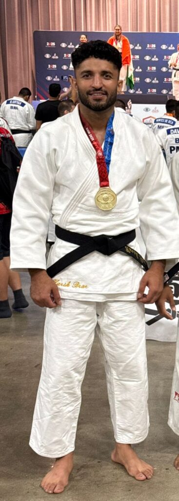 ਗੁਰਦਾਸਪੁਰ 30 ਜੂਨ 2025 (ਦੀ ਪੰਜਾਬ ਵਾਾਇਰ)। ਸ਼ਹੀਦ ਭਗਤ ਸਿੰਘ ਜੂਡੋ ਟ੍ਰੇਨਿੰਗ ਸੈਂਟਰ ਗੁਰਦਾਸਪੁਰ ਦੇ ਜੂਡੋ ਖਿਡਾਰੀ ਏ ਐਸ ਆਈ ਕਰਨਜੀਤ ਸਿੰਘ ਮਾਨ ਅਮਰੀਕਾ ਦੇ ਬਰਮਿੰਘਮ ਸਿਟੀ ਦੇ ਅਲਬਾਮਾ ਖੇਤਰ ਵਿਚ ਹੋ ਰਹੀਆਂ ਵਿਸ਼ਵ ਪੁਲਿਸ ਅਤੇ ਫਾਇਰ ਗੇਮਸ 2025 ਵਿੱਚ 90 ਕਿਲੋ ਭਾਰ ਵਰਗ ਵਿੱਚ ਗੋਲਡ ਮੈਡਲ ਜਿੱਤ ਕੇ ਤਿਰੰਗਾ ਲਹਿਰਾਇਆ।ਇਹ ਖੇਡਾਂ 28 ਜੂਨ ਤੋਂ 6 ਜੁਲਾਈ ਤੱਕ ਹੋ ਰਹੀਆਂ ਹਨ। ਇਹਨਾਂ ਖੇਡਾਂ ਵਿਚ ਵਿਸ਼ਵ ਭਰ ਤੋਂ 60 ਦੇਸ਼ਾਂ ਦੇ 8000 ਤੋਂ ਵੱਧ ਖਿਡਾਰੀ ਭਾਗ ਲੈ ਰਹੇ ਹਨ।