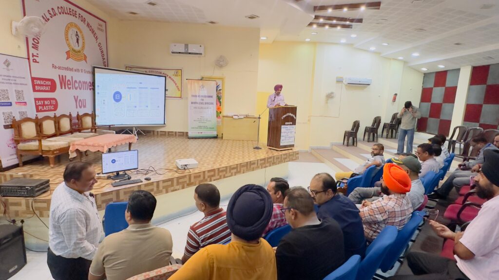 ਗੁਰਦਾਸਪੁਰ, 15 ਜੁਲਾਈ 2025 (ਮੰਨਨ ਸੈਣੀ )। ਭਾਰਤ ਚੋਣ ਕਮਿਸ਼ਨ ਵੱਲੋਂ ਜਾਰੀ ਹਦਾਇਤਾਂ ਅਨੁਸਾਰ ਡਿਪਟੀ ਕਮਿਸ਼ਨਰ-ਕਮ-ਜ਼ਿਲ੍ਹਾ ਚੋਣ ਅਫ਼ਸਰ, ਸ੍ਰੀ ਦਲਵਿੰਦਰਜੀਤ ਸਿੰਘ, ਆਈ.ਏ.ਐੱਸ. ਦੀ ਅਗਵਾਈ ਹੇਠ ਜ਼ਿਲ੍ਹਾ ਗੁਰਦਾਸਪੁਰ ਦੇ ਸਾਰੇ ਵਿਧਾਨ ਸਭਾ ਚੋਣ ਹਲਕਿਆਂ ਵਿੱਚ ਨਿਯੁਕਤ ਬੂਥ ਲੈਵਲ ਅਫ਼ਸਰਾਂ ਨੂੰ ਵੋਟਰ ਸੂਚੀਆਂ ਅਤੇ ਚੋਣਾਂ ਸਬੰਧੀ ਕੰਮਾਂ ਬਾਰੇ ਸਿਖਲਾਈ ਦੇਣ ਲਈ 2 ਰੋਜ਼ਾ ਵਿਸ਼ੇਸ਼ ਟਰੇਨਿੰਗ ਪ੍ਰੋਗਰਾਮ ਅੱਜ ਮੁਕੰਮਲ ਹੋ ਗਿਆ।