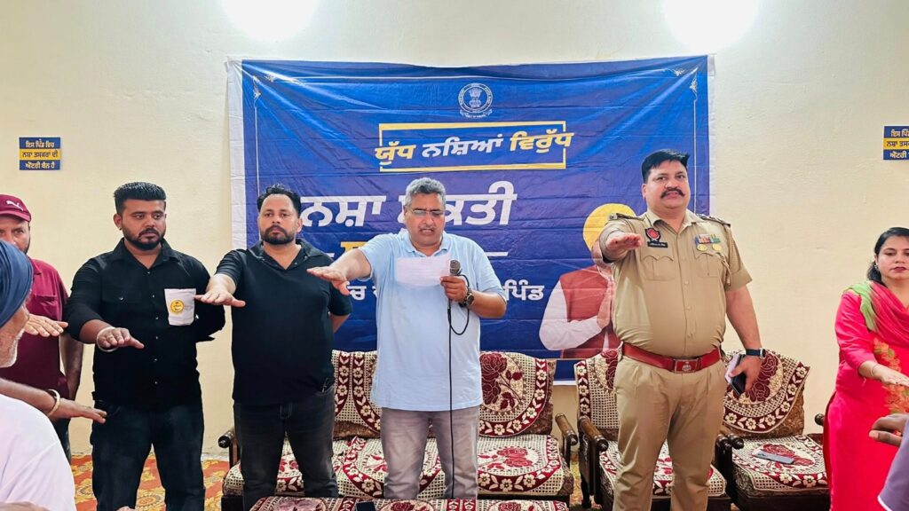 ਦੀਨਾਨਗਰ/ਗੁਰਦਾਸਪੁਰ, 15 ਜੁਲਾਈ 2025 ( ਮੰਨਨ ਸੈਣੀ )। ਮੁੱਖ ਮੰਤਰੀ ਪੰਜਾਬ ਸ. ਭਗਵੰਤ ਸਿੰਘ ਮਾਨ ਦੀ ਅਗਵਾਈ ਹੇਠ ਪੰਜਾਬ ਸਰਕਾਰ ਵੱਲੋਂ ਚਲਾਏ ਜਾ ਰਹੇ ਯੁੱਧ ਨਸ਼ਿਆਂ ਵਿਰੁੱਧ ਤਹਿਤ ਨਸ਼ਾ ਮੁਕਤੀ ਯਾਤਰਾ ਅੱਜ ਮੁੜ ਸ਼ੁਰੂ ਹੋ ਗਈ ਹੈ। ਨਸ਼ਾ ਮੁਕਤੀ ਯਾਤਰਾ ਅੱਜ ਵਿਧਾਨ ਸਭਾ ਹਲਕਾ ਦੀਨਾਨਗਰ ਦੇ ਪਿੰਡ ਬਿਆਨਪੁਰ, ਸਿੱਧਪੁਰ ਅਤੇ ਮਕੌੜਾ ਵਿਖੇ ਪਹੁੰਚੀ ਜਿੱਥੇ ਵਿਲੇਜ ਡਿਫੈਂਸ ਕਮੇਟੀਆਂ ਦੇ ਨੁਮਾਇੰਦਿਆਂ ਅਤੇ ਪਿੰਡਾਂ ਦੇ ਵਸਨੀਕਾਂ ਨੂੰ ਨਸ਼ਿਆਂ ਵਿਰੁੱਧ ਲਾਮਬੰਦ ਕੀਤਾ ਗਿਆ। ਇਸ ਮੌਕੇ ਹਾਜ਼ਰ ਇਕੱਠ ਨੂੰ ਸ਼ਮਸ਼ੇਰ ਸਿੰਘ ਦੀਨਾਨਗਰ ਵੱਲੋਂ ਨਸ਼ਿਆਂ ਵਿਰੁੱਧ ਸਹੁੰ ਚੁਕਾਈ ਗਈ।