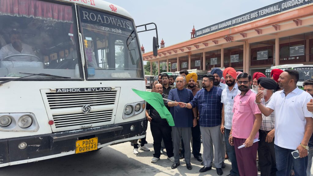 ਗੁਰਦਾਸਪੁਰ, 24 ਜੁਲਾਈ 2025 (ਮੰਨਨ ਸੈਣੀ)। ਪੰਜਾਬ ਸਰਕਾਰ ਵੱਲੋਂ ਗੁਰਦਾਸਪੁਰ ਵਾਸੀਆਂ ਸਮੇਤ ਪੰਡੋਰੀ ਧਾਮ ਦੇ ਪੈਰੋਕਾਰਾਂ ਨੂੰ ਵੱਡੀ ਸਹੂਲਤ ਦਿੰਦਿਆਂ ਅੱਜ ਬੱਸ ਸਟੈਂਡ ਗੁਰਦਾਸਪੁਰ ਤੋਂ ਪੰਡੋਰੀ ਧਾਮ ਲਈ ਪੰਜਾਬ ਰੋਡਵੇਜ਼ ਦੀ ਬੱਸ ਸਰਵਿਸ ਨੂੰ ਦੁਬਾਰਾ ਸ਼ੁਰੂ ਕਰ ਦਿੱਤਾ ਗਿਆ ਹੈ। ਪੰਜਾਬ ਹੈਲਥ ਸਿਸਟਮਜ਼ ਕਾਰਪੋਰੇਸ਼ਨ ਦੇ ਚੇਅਰਮੈਨ ਸ੍ਰੀ ਰਮਨ ਬਹਿਲ ਅਤੇ ਨਗਰ ਸੁਧਾਰ ਟਰੱਸਟ ਗੁਰਦਾਸਪੁਰ ਦੇ ਚੇਅਰਮੈਨ ਸ੍ਰੀ ਰਾਜੀਵ ਸ਼ਰਮਾ ਵੱਲੋਂ ਅੱਜ ਬਾਬਾ ਬੰਦਾ ਸਿੰਘ ਅੰਤਰਰਾਜੀ ਬੱਸ ਅੱਡੇ ਗੁਰਦਾਸਪੁਰ ਤੋਂ ਪੰਜਾਬ ਰੋਡਵੇਜ਼ ਦੀ ਬੱਸ ਹਰੀ ਝੰਡੀ ਦਿਖਾ ਕੇ ਪੰਡੋਰੀ ਧਾਮ ਲਈ ਰਵਾਨਾ ਕੀਤਾ ਗਿਆ।