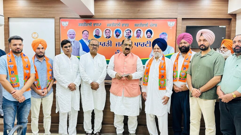 ਚੰਡੀਗੜ੍ਹ, 25 ਅਗਸਤ, 2025 (ਦੀ ਪੰਜਾਬ ਵਾਇਰ)– ਅੱਜ ਚੰਡੀਗੜ੍ਹ ਵਿਖੇ ਪੰਜਾਬ ਭਾਰਤੀ ਜਨਤਾ ਪਾਰਟੀ ਦੇ ਮੁੱਖ ਦਫ਼ਤਰ ਵਿੱਚ ਸੇਵਾਮੁਕਤ ਐਸ.ਡੀ.ਐਮ. ਹਰਕਨਵਲਜੀਤ ਸਿੰਘ ਆਪਣੇ ਸਾਥੀਆਂ ਸਮੇਤ ਭਾਜਪਾ ਦੇ ਕਾਰਜਕਾਰੀ ਸੂਬਾ ਪ੍ਰਧਾਨ ਅਸ਼ਵਨੀ ਸ਼ਰਮਾ ਦੀ ਹਾਜ਼ਰੀ ਵਿੱਚ ਭਾਜਪਾ ਵਿੱਚ ਸ਼ਾਮਲ ਹੋਏ।