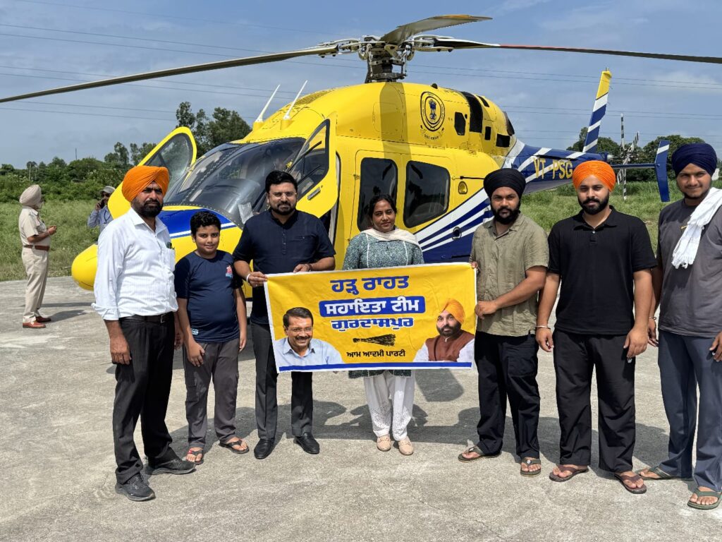 ਗੁਰਦਾਸਪੁਰ, 29 ਅਗਸਤ 2025 ( ਮੰਨਨ ਸੈਣੀ ) । ਪੰਜਾਬ ਦੇ ਮੁੱਖ ਮੰਤਰੀ ਭਗਵੰਤ ਸਿੰਘ ਮਾਨ ਵੱਲੋਂ ਮਾਨਵਤਾ ਪੱਖੀ ਪਹੁੰਚ ਅਪਣਾਉਂਦੇ ਹੋਏ ਸੂਬੇ ਦੇ ਹੜ੍ਹ ਪ੍ਰਭਾਵਿਤ ਇਲਾਕਿਆਂ ਵਿੱਚ ਫਸੇ ਪਰਿਵਾਰਾਂ ਨੂੰ ਰਾਹਤ ਸਮਗਰੀ ਪਹੁੰਚਾਉਣ ਅਤੇ ਲੋਕਾਂ ਦੀ ਸਹਾਇਤਾ ਲਈ ਤਾਇਨਾਤ ਕੀਤੇ ਸੂਬਾ ਸਰਕਾਰ ਦੇ ਹੈਲੀਕਾਪਟਰ ਵੱਲੋਂ ਅੱਜ ਤੀਜੇ ਦਿਨ ਵੀ ਜ਼ਿਲ੍ਹਾ ਗੁਰਦਾਸਪੁਰ ਦੇ ਹੜ੍ਹ ਪ੍ਰਭਾਵਿਤ ਇਲਾਕਿਆਂ ਵਿੱਚ ਲਗਾਤਾਰ ਰਾਹਤ ਕਾਰਜ ਚਲਾਏ ਜਾ ਰਹੇ ਹਨ।