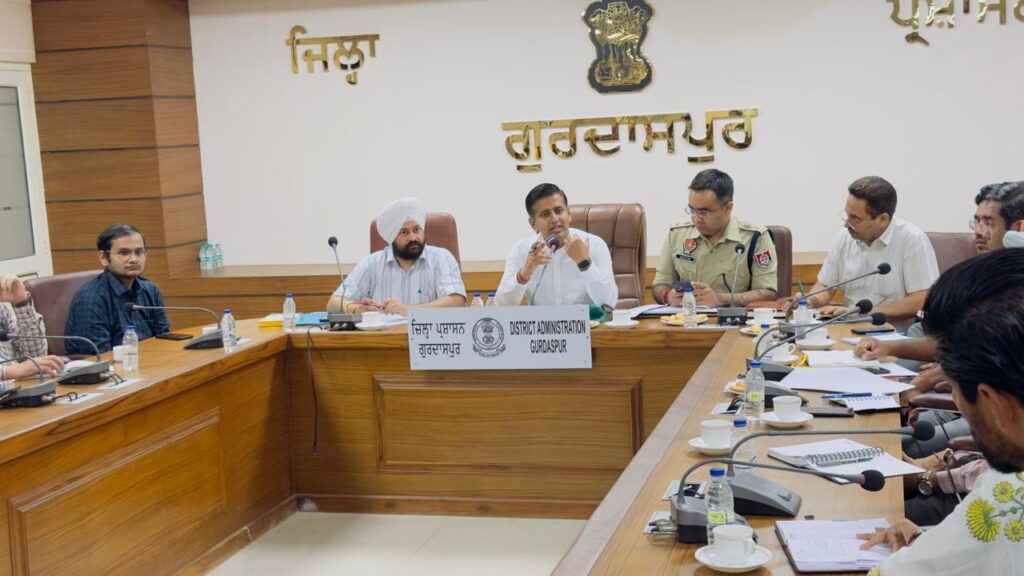 ਗੁਰਦਾਸਪੁਰ, 08 ਸਤੰਬਰ 2025 (ਦੀ ਪੰਜਾਬ ਵਾਇਰ )। ਸ੍ਰੀ ਹਿਮਾਂਸ਼ੂ ਅਗਰਵਾਲ, ਆਈ.ਏ.ਐੱਸ. ਵੱਲੋਂ ਡਿਪਟੀ ਕਮਿਸ਼ਨਰ ਗੁਰਦਾਸਪੁਰ ਦਾ ਆਰਜ਼ੀ ਚਾਰਜ ਸੰਭਾਲਣ ਤੋਂ ਤੁਰੰਤ ਬਾਅਦ ਅੱਜ ਸਵੇਰੇ ਅਧਿਕਾਰੀਆਂ ਨਾਲ ਮੀਟਿੰਗ ਕਰਕੇ ਜ਼ਿਲ੍ਹੇ ਦੇ ਹੜ੍ਹ ਪ੍ਰਭਾਵਿਤ ਇਲਾਕਿਆਂ ਵਿੱਚ ਚੱਲ ਰਹੇ ਰਾਹਤ ਅਤੇ ਪੁਨਰਵਾਸ ਕਾਰਜਾਂ ਨੂੰ ਹੋਰ ਤੇਜ਼ ਕਰਨ ਦੀਆਂ ਹਦਾਇਤਾਂ ਦਿੱਤੀਆਂ ਗਈਆਂ ਹਨ। ਸ੍ਰੀ ਦਲਵਿੰਦਰਜੀਤ ਸਿੰਘ ਦੇ ਛੁੱਟੀ ਜਾਣ ਕਾਰਨ ਪੰਜਾਬ ਸਰਕਾਰ ਵੱਲੋਂ ਜਲੰਧਰ ਦੇ ਡਿਪਟੀ ਕਮਿਸ਼ਨਰ ਸ੍ਰੀ ਹਿਮਾਂਸ਼ੂ ਅਗਰਵਾਲ ਨੂੰ ਗੁਰਦਾਸਪੁਰ ਦੇ ਡਿਪਟੀ ਕਮਿਸ਼ਨਰ ਦਾ ਵਾਧੂ ਚਾਰਜ ਦਿੱਤਾ ਗਿਆ ਹੈ।