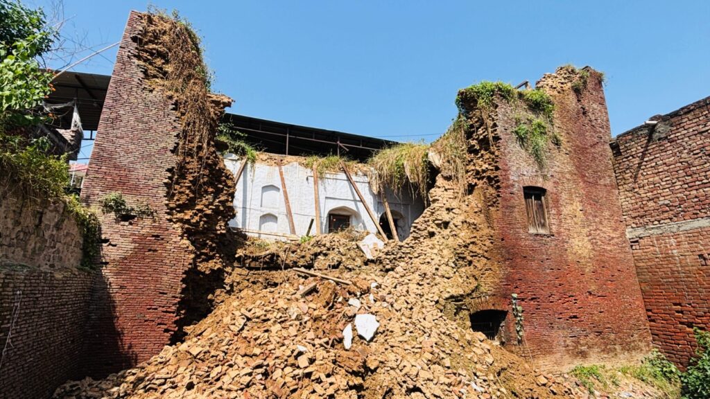 ਸ੍ਰੀ ਹਰਗੋਬਿੰਦਪੁਰ/ਬਟਾਲਾ, 20 ਸਤੰਬਰ (ਮੰਨਨ ਸੈਣੀ ) – ਬੀਤੇ ਦਿਨੀਂ ਪਏ ਭਾਰੀ ਮੀਂਹਾਂ ਅਤੇ ਹੜ੍ਹਾਂ ਕਾਰਨ ਜਿੱਥੇ ਹੋਰ ਜਾਨੀ-ਮਾਲੀ ਨੁਕਸਾਨ ਹੋਇਆ ਹੈ ਓਥੇ ਇਨ੍ਹਾਂ ਬਾਰਸ਼ਾਂ ਨਾਲ ਇਤਿਹਾਸਕ ਇਮਾਰਤਾਂ ਨੂੰ ਵੀ ਵੱਡਾ ਨੁਕਸਾਨ ਪਹੁੰਚਿਆ ਹੈ। ਇਨ੍ਹਾਂ ਬਾਰਸ਼ਾਂ ਕਾਰਨ ਇਤਿਹਾਸਿਕ ਤੇ ਧਾਰਮਿਕ ਸ਼ਹਿਰ ਸ੍ਰੀ ਹਰਗੋਬਿੰਦਪੁਰ ਸਾਹਿਬ ਦੇ ਇਤਿਹਾਸਕ ਲਾਹੌਰੀ ਦਰਵਾਜ਼ੇ ਦਾ ਇੱਕ ਹਿੱਸਾ ਡਿੱਗ ਗਿਆ ਹੈ, ਜਿਸ ਕਾਰਨ ਇਸ ਇਤਿਹਾਸਕ ਦਰਵਾਜ਼ੇ ਦੀ ਹੋਂਦ ਖ਼ਤਰੇ ਵਿੱਚ ਆ ਗਈ ਹੈ।