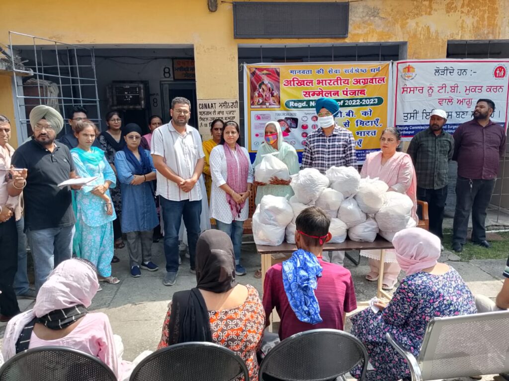 ਗੁਰਦਾਸਪੁਰ, 25 ਸਤੰਬਰ 2025 (ਦੀ ਪੰਜਾਬ ਵਾਇਰ)। ਟੀ.ਬੀ. ਮੁਕਤ ਭਾਰਤ ਅਭਿਆਨ ਤਹਿਤ, ਸਿਵਲ ਸਰਜਨ ਡਾ. ਜਸਵਿੰਦਰ ਸਿੰਘ ਜੀ ਦੀ ਅਗੁਵਾਈ ਹੇਠ, ਅਖਿਲ ਭਾਰਤੀ ਅਗਰਵਾਲ ਸੰਮੇਲਨ ਪੰਜਾਬ ਵੱਲੋਂ 40 ਟੀ.ਬੀ. ਮਰੀਜ਼ਾਂ ਨੂੰ ਪੌਸ਼ਟਿਕ ਖੁਰਾਕ ਲਈ ਰਾਸ਼ਨ ਵੰਡਿਆ ਗਿਆ।