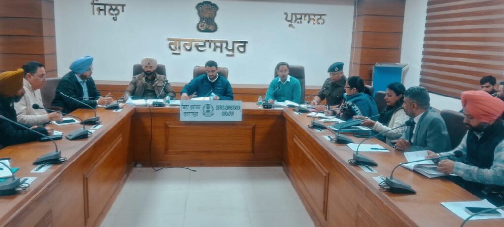ਗੁਰਦਾਸਪੁਰ, 3 ਦਸੰਬਰ 2025 (ਮੰਨਨ ਸੈਣੀ )—- 14 ਦਸੰਬਰ ਨੂੰ ਜ਼ਿਲ੍ਹਾ ਪ੍ਰੀਸ਼ਦ ਅਤੇ ਪੰਚਾਇਤ ਸੰਮਤੀ ਦੀਆਂ ਹੋ ਰਹੀਆਂ ਚੋਣਾਂ ਦੇ ਸਬੰਧ ਵਿੱਚ ਰਾਜ ਚੋਣ ਕਮਿਸ਼ਨ ਵਲੋਂ ਗੁਰਦਾਸਪੁਰ ਵਿੱਚ ਤਾਇਨਾਤ ਕੀਤੇ ਗਏ ਚੋਣ ਆਬਜ਼ਰਵਰ ਸ੍ਰੀ ਹਰਪ੍ਰੀਤ ਸਿੰਘ, ਆਈ.ਏ.ਐੱਸ ਵਲੋਂ ਅੱਜ ਚੋਣਾਂ ਸਬੰਧੀ ਅਧਿਕਾਰੀਆਂ ਨਾਲ ਮੀਟਿੰਗ ਕਰਕੇ ਕੀਤੀਆਂ ਜਾ ਰਹੀਆਂ ਤਿਆਰੀਆਂ ਦਾ ਜਾਇਜ਼ਾ ਲਿਆ। ਇਸ ਮੌਕੇ ਡਾ. ਮਹਿਤਾਬ ਸਿੰਘ ਐੱਸ.ਐੱਸ.ਪੀ ਬਟਾਲਾ, ਗੁਰਸਿਮਰਨ ਸਿੰਘ ਢਿੱਲੋਂ, ਵਧੀਕ ਡਿਪਟੀ ਕਮਿਸ਼ਨਰ (ਜ), ਗੁਰਪ੍ਰੀਤ ਸਿੰਘ ਗਿੱਲ, ਵਧੀਕ ਡਿਪਟੀ ਕਮਿਸ਼ਨਰ (ਵਿਕਾਸ), ਜੁਗਰਾਜ ਸਿੰਘ ਐੱਸ.ਪੀ (ਐੱਚ) ਗੁਰਦਾਸਪੁਰ ਸਮੇਤ ਸਮੂਹ ਰਿਟਰਨਿੰਗ ਤੇ ਚੋਣ ਅਧਿਕਾਰੀ ਮੋਜੂਦ ਸਨ।