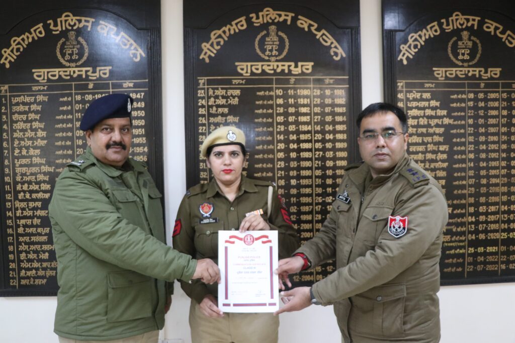 ਗੁਰਦਾਸਪੁਰ, 19 ਦਸੰਬਰ 2025 (ਮੰਨਨ ਸੈਣੀ)– ਆਦਿੱਤਯ, ਆਈ.ਪੀ.ਐਸ, ਸੀਨੀਅਰ ਕਪਤਾਨ ਪੁਲਸ, ਗੁਰਦਾਸਪੁਰ ਨੇ ਪ੍ਰੈਸ ਨੂੰ ਜਾਣਕਾਰੀ ਦਿੰਦੇ ਹੋਏ ਦੱਸਿਆ ਕਿ ਜਿਲ੍ਹਾ ਵਿੱਚ ਤਾਇਨਾਤ ਪੁਲਿਸ ਅਧਿਕਾਰੀਆਂ/ਕਰਮਚਾਰੀਆਂ ਜਿੰਨ੍ਹਾ ਵੱਲੋਂ ਸਾਲ 2025 ਦੌਰਾਨ ਸ਼ਲਾਘਾਯੋਗ ਕਾਰਗੁਜ਼ਾਰੀ ਕੀਤੀ ਗਈ ਹੈ, ਉਹਨਾਂ ਨੂੰ ਸਨਮਾਨਿਤ ਕੀਤਾ ਗਿਆ ਹੈ। ਇਸ ਮੌਕਾ ਸੀਨੀਅਰ ਕਪਤਾਨ ਪੁਲਸ, ਗੁਰਦਾਸਪੁਰ ਨੇ ਸਨਮਾਨਿਤ ਅਧਿਕਾਰੀਆਂ/ਕਰਮਚਾਰੀਆਂ ਦੀ ਪ੍ਰਸ਼ੰਸਾ ਕਰਦੇ ਹੋਏ ਕਿਹਾ ਕਿ ਇਹਨਾਂ ਅਧਿਕਾਰੀਆਂ/ਕਰਮਚਾਰੀਆਂ ਦੀ ਮਿਹਨਤ ਅਤੇ ਡਿਊਟੀ ਪ੍ਰਤੀ ਜਿੰਮੇਵਾਰ ਰਵੱਈਆ ਹੋਰਾਂ ਅਧਿਕਾਰੀਆਂ/ਕਰਮਚਾਰੀਆਂ ਲਈ ਪ੍ਰੇਰਣਾ ਹੈ।