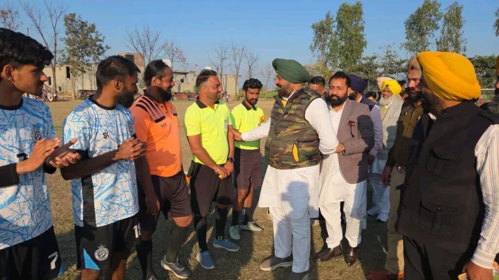ਡੇਰਾ ਬਾਬਾ ਨਾਨਕ, 9 ਫਰਵਰੀ 2026 (ਮੰਨਨ ਸੈਣੀ)— ਡੇਰਾ ਬਾਬਾ ਨਾਨਕ ਦੇ ਵਿਧਾਇਕ ਗੁਰਦੀਪ ਸਿੰਘ ਰੰਧਾਵਾ ਵਲੋਂ ਪਿੰਡ ਦਬੁਰਜੀ ਵਿਖੇ ਫੁੱਟਬਾਲ ਟੂਰਨਾਮੈਂਟ ਮੌਕੇ ਸ਼ਿਰਕਤ ਕਰਕੇ ਨੌਜਵਾਨ ਖਿਡਾਰੀਆਂ ਦੀ ਹੌਸਲਾ ਅਫ਼ਜਾਈ ਕੀਤੀ ਗਈ। ਉਨ੍ਹਾਂ ਨੌਜਵਾਨਾਂ ਨੂੰ ਵੱਧ ਤੋਂ ਵੱਧ ਖੇਡਾਂ ਨਾਲ ਜੁੜਨ ਅਤੇ ਨਸ਼ਿਆਂ ਤੋਂ ਦੂਰ ਰਹਿਣ ਦੀ ਅਪੀਲ ਕੀਤੀ। ਉਨ੍ਹਾਂ ਕਿਹਾ ਕਿ ਖੇਡਾਂ ਸਰੀਰਕ ਤੰਦਰੁਸਤੀ ਨਾਲ ਨਾਲ ਅਨੁਸ਼ਾਸਨ ਅਤੇ ਸਕਾਰਾਤਮਕ ਸੋਚ ਨੂੰ ਵੀ ਮਜ਼ਬੂਤ ਕਰਦੀਆਂ ਹਨ ।