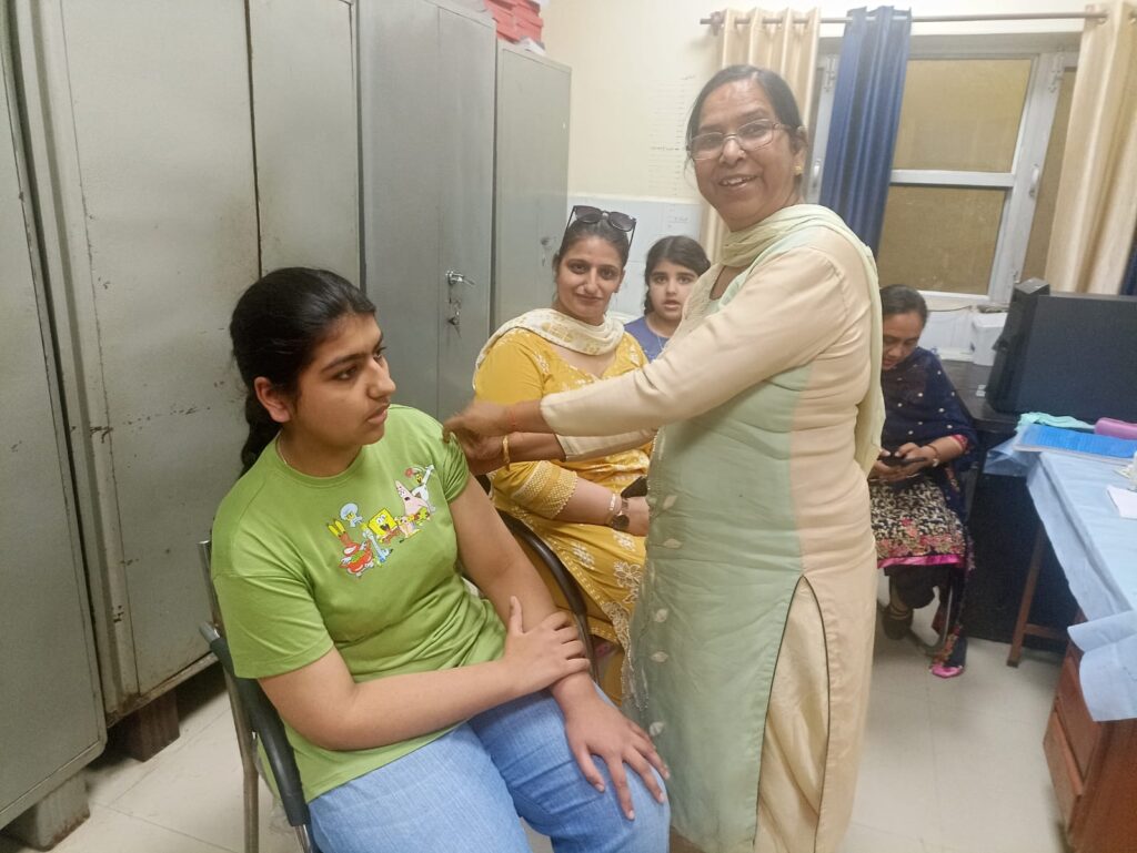 ਉਨ੍ਹਾਂ ਨੇ ਦੱਸਿਆ ਕਿ ਅੱਜ ਮੈਡੀਕਲ ਅਫਸਰ ਡਾਕਟਰ ਯੋਗਿਤਾ, ਮੈਡੀਕਲ ਅਫਸਰ ਡਾਕਟਰ ਅੰਕੁਰ ਕੌਸ਼ਲ, ਮੈਡੀਕਲ ਅਫਸਰ ਡਾਕਟਰ ਰਿਚਾ ਸ਼ਰਮਾ ਨੇ ਆਪਣੀ ਲੜਕੀਆਂ ਨੂੰ ਐੱਚਪੀਵੀ ਦਾ ਟੀਕਾ ਲਗਵਾਇਆ ।