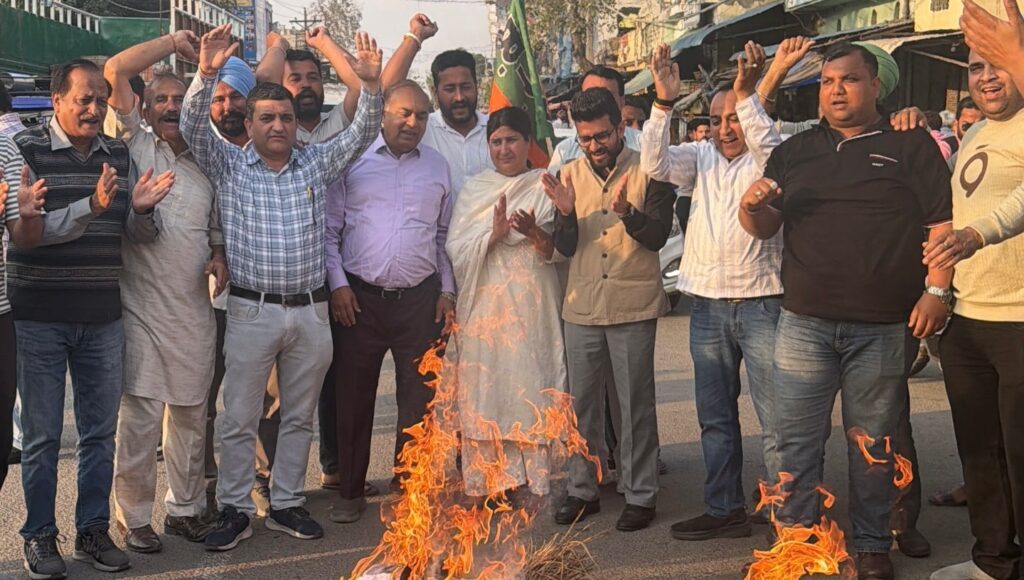 ਭਾਜਪਾ ਨੇ ਆਮ ਆਦਮੀ ਪਾਰਟੀ ਦਾ ਪੁਤਲਾ ਸਾੜਿਆ