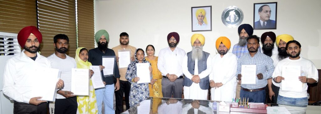 ਚੰਡੀਗੜ੍ਹ/ ਐਸ.ਏ.ਐਸ. ਨਗਰ, 24 ਅਪ੍ਰੈਲ 2026 (ਦੀ ਪੰਜਾਬ ਵਾਇਰ)। ਪੰਜਾਬ ਦੇ ਖੇਤੀਬਾੜੀ ਅਤੇ ਕਿਸਾਨ ਭਲਾਈ ਮੰਤਰੀ ਸ. ਗੁਰਮੀਤ ਸਿੰਘ ਖੁੱਡੀਆਂ ਅਤੇ ਪੰਜਾਬ ਮੰਡੀ ਬੋਰਡ ਦੇ ਚੇਅਰਮੈਨ ਸ. ਹਰਚੰਦ ਸਿੰਘ ਬਰਸਟ ਨੇ ਐਸ.ਏ.ਐਸ. ਨਗਰ ਸਥਿਤ ਪੰਜਾਬ ਮੰਡੀ ਬੋਰਡ ਦੇ ਮੁੱਖ ਦਫ਼ਤਰ ਵਿਖੇ ਅੱਠ ਉਮੀਦਵਾਰਾਂ ਨੂੰ ਤਰਸ ਦੇ ਆਧਾਰ ‘ਤੇ ਨਿਯੁਕਤੀ ਪੱਤਰ ਸੌਂਪੇ।