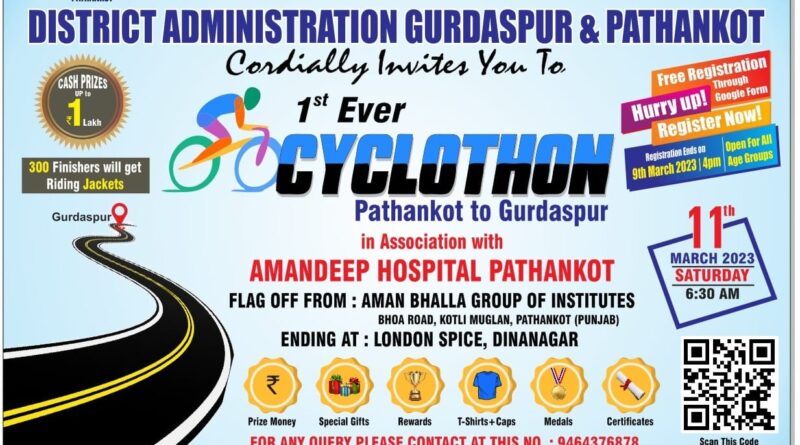 ਗੁਰਦਾਸਪੁਰ ਪੰਜਾਬ March 5, 2023 ਸਾਡਾ ਖੁਆਬ ਨਸਾ ਮੁਕਤ ਪੰਜਾਬ ਅਧੀਨ 11 ਮਾਰਚ ਨੂੰ ਕੀਤੀ ਜਾਵੇਗੀ ਸਾਈਕਲੋਥਨ (ਸਾਈਕਲ ਮੈਰਾਥਨ) – ਡਿਪਟੀ ਕਮਿਸ਼ਨਰ ਡਾ. ਹਿਮਾਂਸ਼ੂ ਅਗਰਵਾਲ