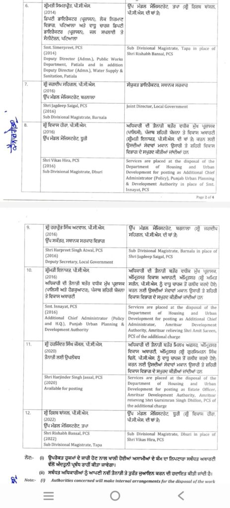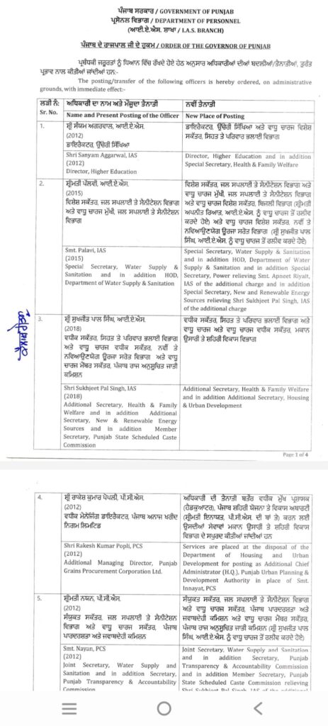 ਚੰਡੀਗੜ੍ਹ, 21 ਅਪ੍ਰੈਲ 2025 (ਦੀ ਪੰਜਾਬ ਵਾਇਰ)। ਪੰਜਾਬ ਸਰਕਾਰ ਵੱਲੋ ਆਈ.ਏ.ਐਸ ਅਤੇ ਪੀ.ਸੀ.ਐਸ ਅਧਿਕਾਰੀਆਂ ਦਾ ਤਬਾਦਲਾ ਕੀਤਾ ਗਿਆ ਹੈ। ਜਿਸ ਦੀ ਸੂਚੀ ਹੇਠ ਦਿੱਤੀ ਗਈ ਹੈ।
