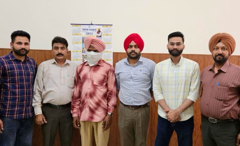 ਚੰਡੀਗੜ੍ਹ 21 ਅਪ੍ਰੈਲ, 2025 ( ਦੀ ਪੰਜਾਬ ਵਾਇਰ)।ਪੰਜਾਬ ਵਿਜੀਲੈਂਸ ਬਿਊਰੋ ਨੇ ਸੂਬੇ ਵਿੱਚ ਭ੍ਰਿਸ਼ਟਾਚਾਰ ਵਿਰੁੱਧ ਚਲਾਈ ਆਪਣੀ ਮੁਹਿੰਮ ਦੌਰਾਨ ਅੱਜ ਬਲਾਕ ਵਿਕਾਸ ਤੇ ਪੰਚਾਇਤ ਦਫ਼ਤਰ, ਬਰਨਾਲਾ ਵਿਖੇ ਤਾਇਨਾਤ ਪੰਚਾਇਤ ਸਕੱਤਰ ਗੁਰਮੇਲ ਸਿੰਘ ਨੂੰ 20,000 ਰੁਪਏ ਰਿਸ਼ਵਤ ਮੰਗਣ ਅਤੇ ਲੈਣ ਦੇ ਦੋਸ਼ ਹੇਠ ਗ੍ਰਿਫ਼ਤਾਰ ਕੀਤਾ ਹੈ।