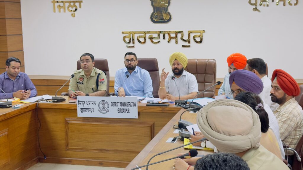 ਗੁਰਦਾਸਪੁਰ, 8 ਮਈ 2025 (ਮੰਨਣ ਸੈਣੀ )। ਹਿੰਦ-ਪਾਕਿ ਸਰਹੱਦ ‘ਤੇ ਬਣੇ ਸੰਵੇਦਨਸ਼ੀਲ ਮਾਹੌਲ ਦੇ ਮੱਦੇਨਜ਼ਰ ਡਿਪਟੀ ਕਮਿਸ਼ਨਰ ਗੁਰਦਾਸਪੁਰ ਸ੍ਰੀ ਦਲਵਿੰਦਰਜੀਤ ਸਿੰਘ ਵੱਲੋਂ ਜ਼ਿਲ੍ਹਾ ਅਧਿਕਾਰੀਆਂ ਨਾਲ ਕੋਆਰਡੀਨੇਸ਼ਨ ਮੀਟਿੰਗ ਕੀਤੀ ਗਈ। ਮੀਟਿੰਗ ਦੌਰਾਨ ਐੱਸ.ਐੱਸ.ਪੀ. ਗੁਰਦਾਸਪੁਰ ਸ੍ਰੀ ਆਦਿੱਤਯ, ਵਧੀਕ ਡਿਪਟੀ ਕਮਿਸ਼ਨਰ (ਜ) ਡਾ. ਹਰਜਿੰਦਰ ਸਿੰਘ ਬੇਦੀ, ਐੱਸ.ਡੀ.ਐੱਮ. ਦੀਨਾਨਗਰ ਸ. ਜਸਪਿੰਦਰ ਸਿੰਘ ਭੁੱਲਰ, ਐੱਸ.ਡੀ.ਐੱਮ. ਗੁਰਦਾਸਪੁਰ ਸ੍ਰੀ ਮਨਜੀਤ ਸਿੰਘ ਰਾਜਲਾ, ਐੱਸ.ਡੀ.ਐੱਮ. ਕਲਾਨੌਰ ਸ੍ਰੀਮਤੀ ਜਯੋਤਸਨਾ ਸਿੰਘ ਅਤੇ ਵੱਖ-ਵੱਖ ਵਿਭਾਗਾਂ ਦੇ ਜ਼ਿਲ੍ਹਾ ਅਧਿਕਾਰੀ ਹਾਜ਼ਰ ਸਨ।