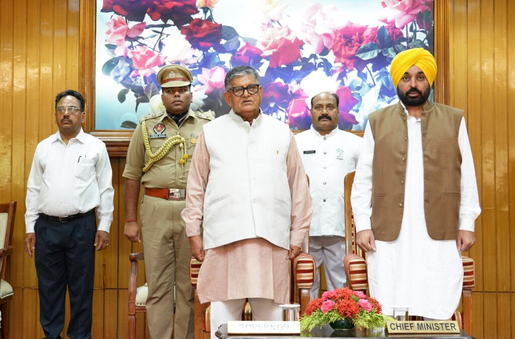 ਚੰਡੀਗੜ੍ਹ, 3 ਜੁਲਾਈ 2025 (ਦੀ ਪੰਜਾਬ ਵਾਇਰ)– ਪੰਜਾਬ ਦੇ ਰਾਜਪਾਲ ਤੇ ਯੂ.ਟੀ. ਚੰਡੀਗੜ੍ਹ ਦੇ ਪ੍ਰਸ਼ਾਸਕ ਗੁਲਾਬ ਚੰਦ ਕਟਾਰੀਆ ਨੇ ਅੱਜ ਮੁੱਖ ਮੰਤਰੀ ਭਗਵੰਤ ਸਿੰਘ ਮਾਨ ਦੀ ਮੌਜੂਦਗੀ ਵਿੱਚ ਪੰਜਾਬ ਰਾਜ ਭਵਨ ਵਿਖੇ ਸਾਦੇ ਪਰ ਪ੍ਰਭਾਵਸ਼ਾਲੀ ਸਮਾਗਮ ਦੌਰਾਨ ਸੰਜੀਵ ਅਰੋੜਾ ਨੂੰ ਕੈਬਨਿਟ ਮੰਤਰੀ ਵਜੋਂ ਅਹੁਦਾ ਅਤੇ ਭੇਦ ਗੁਪਤ ਰੱਖਣ ਦਾ ਹਲਫ਼ ਦਿਵਾਇਆ।