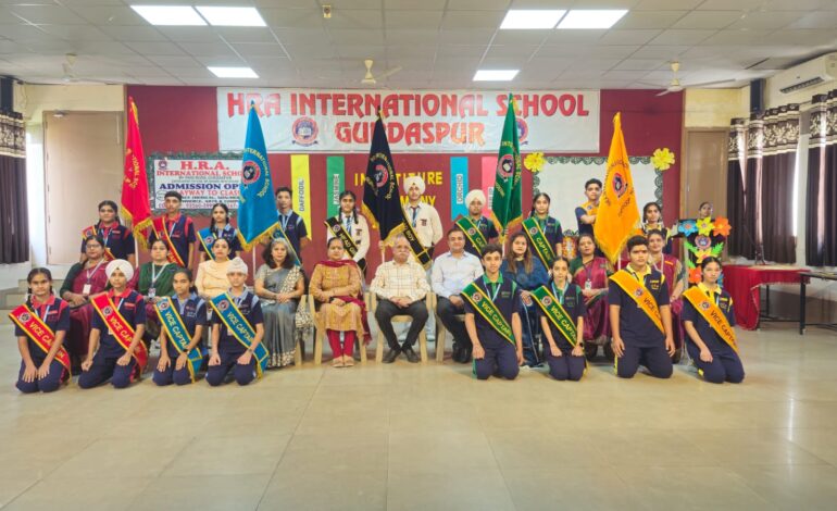 ਗੁਰਦਾਸਪੁਰ, 15 ਜੁਲਾਈ 2025 (ਮੰਨਨ ਸੈਣੀ)। ਮੰਗਲਵਾਰ ਨੂੰ ਪ੍ਰਿੰਸੀਪਲ ਡਿੰਪਲ ਸ਼ਰਮਾ ਜੀ ਦੀ ਅਗਵਾਈ ਹੇਠ ਐੱਚ. ਆਰ. ਏ ਇੰਟਰਨੈਸ਼ਨਲ ਸਕੂਲ ਗੁਰਦਾਸਪੁਰ ਵਿਖੇ ਇਨਵੈਸਟਿਚਰ ਸੈਰਾਮਨੀ ਹੋਈ। ਜਿਸ ਵਿੱਚ ਮੁੱਖ ਮਹਿਮਾਨ ਵਜੋਂ ਸਕੂਲ ਦੇ ਚੇਅਰਮੈਨ ਸ੍ਰੀਮਾਨ ਹੀਰਾਮਨੀ ਅਗਰਵਾਲ ਜੀ ਨੇ ਸ਼ਿਰਕਤ ਕੀਤੀ। ਇਸ ਤੋਂ ਇਲਾਵਾ ਸਕੂਲ ਦੇ ਡਾਇਰੈਕਟਰ ਸ਼੍ਰੀਮਾਨ ਸੱਤਿਆ ਸੇਨ ਅਗਰਵਾਲ ਜੀ ,ਮੈਡਮ ਆਂਚਲ ਅਗਰਵਾਲ ਜੀ, ਮੈਡਮ ਨੀਲੋਫਰ ਜੀ, ਪ੍ਰਿੰਸੀਪਲ ਡਿੰਪਲ ਸ਼ਰਮਾ ਜੀ ਅਤੇ ਮੈਡਮ ਨਵਦੀਪ ਕੌਰ ਜੀ ਵੀ ਵਿਸ਼ੇਸ਼ ਤੌਰ ਤੇ ਹਾਜਰ ਸਨ। ਪ੍ਰੋਗਰਾਮ ਦੀ ਸ਼ੁਰੂਆਤ ਮੁੱਖ – ਮਹਿਮਾਨ ਜੀ ਅਤੇ ਹੋਰ ਮਹਿਮਾਨਾਂ ਵੱਲੋਂ ਜਯੋਤੀ ਜਗਾ ਕੇ ਕੀਤੀ ਗਈ। ਵੱਖ ਵੱਖ ਹਾਊਸ ਦੇ ਕੈਪਟਨ ਅਤੇ ਵਾਈਸ ਕੈਪਟਨ ਦੁਆਰਾ ਮਾਰਚ ਪਾਸ ਕੀਤੀ ਗਈ।