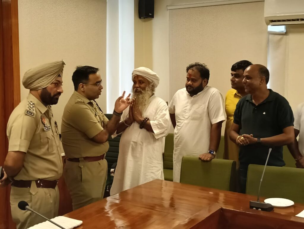 ਐਸਐਸਪੀ ਅਦਿੱਤਯ ਦਾ ਧੰਨਵਾਦ ਕਰਦੇ ਹੇਏ ਮੰਦਿਰ ਦੇ ਪੁਜਾਰੀ