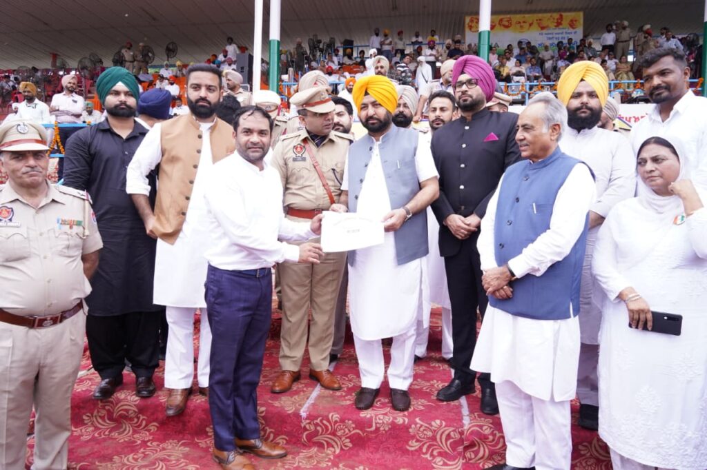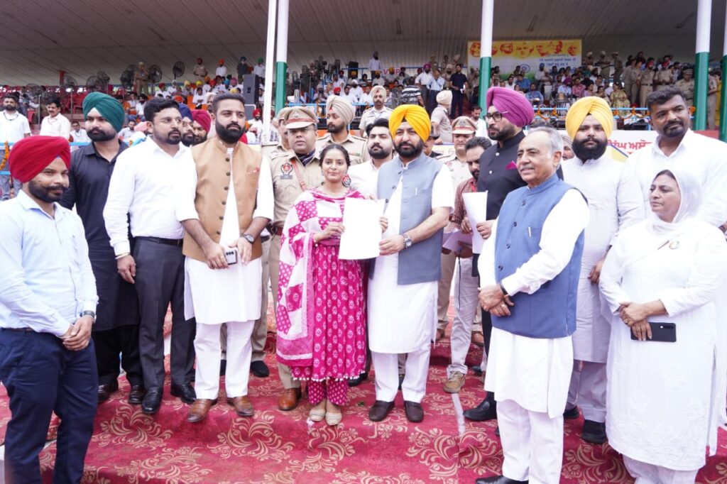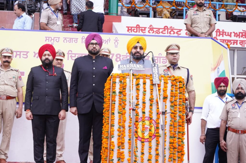ਇਸ ਤੋਂ ਪਹਿਲਾਂ ਕੈਬਨਿਟ ਮੰਤਰੀ ਸ. ਹਰਦੀਪ ਸਿੰਘ ਮੁੰਡੀਆਂ ਨੇ ਸਟੇਡੀਅਮ ਵਿਖੇ ਪਰੇਡ ਟੁਕੜੀਆਂ ਦਾ ਨਿਰੀਖਣ ਕੀਤਾ। ਇਸ ਮੌਕੇ ਡਿਪਟੀ ਕਮਿਸ਼ਨਰ ਸ੍ਰੀ ਦਲਵਿੰਦਰਜੀਤ ਸਿੰਘ ਅਤੇ ਐੱਸ.ਐੱਸ.ਪੀ. ਸ੍ਰੀ ਆਦਿੱਤਯ ਵੀ ਉਨ੍ਹਾਂ ਦੇ ਨਾਲ ਸਨ। ਡੀ.ਐੱਸ.ਪੀ. ਗੁਰਵਿੰਦਰ ਸਿੰਘ ਦੀ ਅਗਵਾਈ ਹੇਠ ਪੰਜਾਬ ਪੁਲਿਸ ਦੇ ਜਵਾਨਾਂ, ਮਹਿਲਾ ਪਲਾਟੂਨ, ਪੰਜਾਬ ਹੋਮਗਾਰਡਜ਼, ਐਨ.ਸੀ.ਸੀ ਦੀਆਂ ਟੁਕੜੀਆਂ ਅਤੇ ਪੰਜਾਬ ਪੁਲਿਸ ਬੈਂਡ ਟੀਮ ਵੱਲੋਂ ਸ਼ਾਨਦਾਰ ਮਾਰਚ ਪਾਸਟ ਕੀਤਾ ਗਿਆ। ਕੈਬਨਿਟ ਮੰਤਰੀ ਵੱਲੋਂ ਸਮਾਗਮ ਦੌਰਾਨ ਆਜ਼ਾਦੀ ਘੁਲਾਟੀਆਂ ਤੇ ਉਨ੍ਹਾਂ ਦੇ ਪਰਿਵਾਰਕ ਮੈਂਬਰਾਂ, ਵੀਰ ਨਾਰੀਆਂ ਅਤੇ ਸ਼ਹੀਦਾਂ ਦੇ ਪਰਿਵਾਰਿਕ ਮੈਂਬਰਾਂ ਦਾ ਪੰਜਾਬ ਸਰਕਾਰ ਤੇ ਜ਼ਿਲ੍ਹਾ ਪ੍ਰਸ਼ਾਸਨ ਦੀ ਤਰਫ਼ੋਂ ਵਿਸ਼ੇਸ਼ ਤੌਰ ‘ਤੇ ਸਨਮਾਨ ਕੀਤਾ ਗਿਆ। ਇਸ ਮੌਕੇ ਲੋੜਵੰਦ ਵਿਅਕਤੀਆਂ ਨੂੰ ਜ਼ਿਲ੍ਹਾ ਰੈੱਡ ਕਰਾਸ ਸੁਸਾਇਟੀ ਦੀ ਤਰਫ਼ੋਂ ਮੁਹੱਈਆ ਕਰਵਾਏ ਗਏ ਟਰਾਈ ਸਾਈਕਲ ਤੇ ਸਿਲਾਈ ਮਸ਼ੀਨਾਂ ਵੰਡੀਆਂ ਗਈਆਂ। ਅਜ਼ਾਦੀ ਸਮਾਗਮ ਦੌਰਾਨ ਜ਼ਿਲ੍ਹੇ ਦੀਆਂ ਵੱਖ-ਵੱਖ ਸਿੱਖਿਆ ਸੰਸਥਾਵਾਂ ਦੇ ਵਿਦਿਆਰਥੀਆਂ ਵੱਲੋਂ ਦੇਸ਼ ਭਗਤੀ ਅਤੇ ਪੰਜਾਬੀ ਸੱਭਿਆਚਾਰ ਨਾ ਲਬਰੇਜ਼ ਸ਼ਾਨਦਾਰ ਪ੍ਰੋਗਰਾਮ ਪੇਸ਼ ਕੀਤਾ ਗਿਆ।